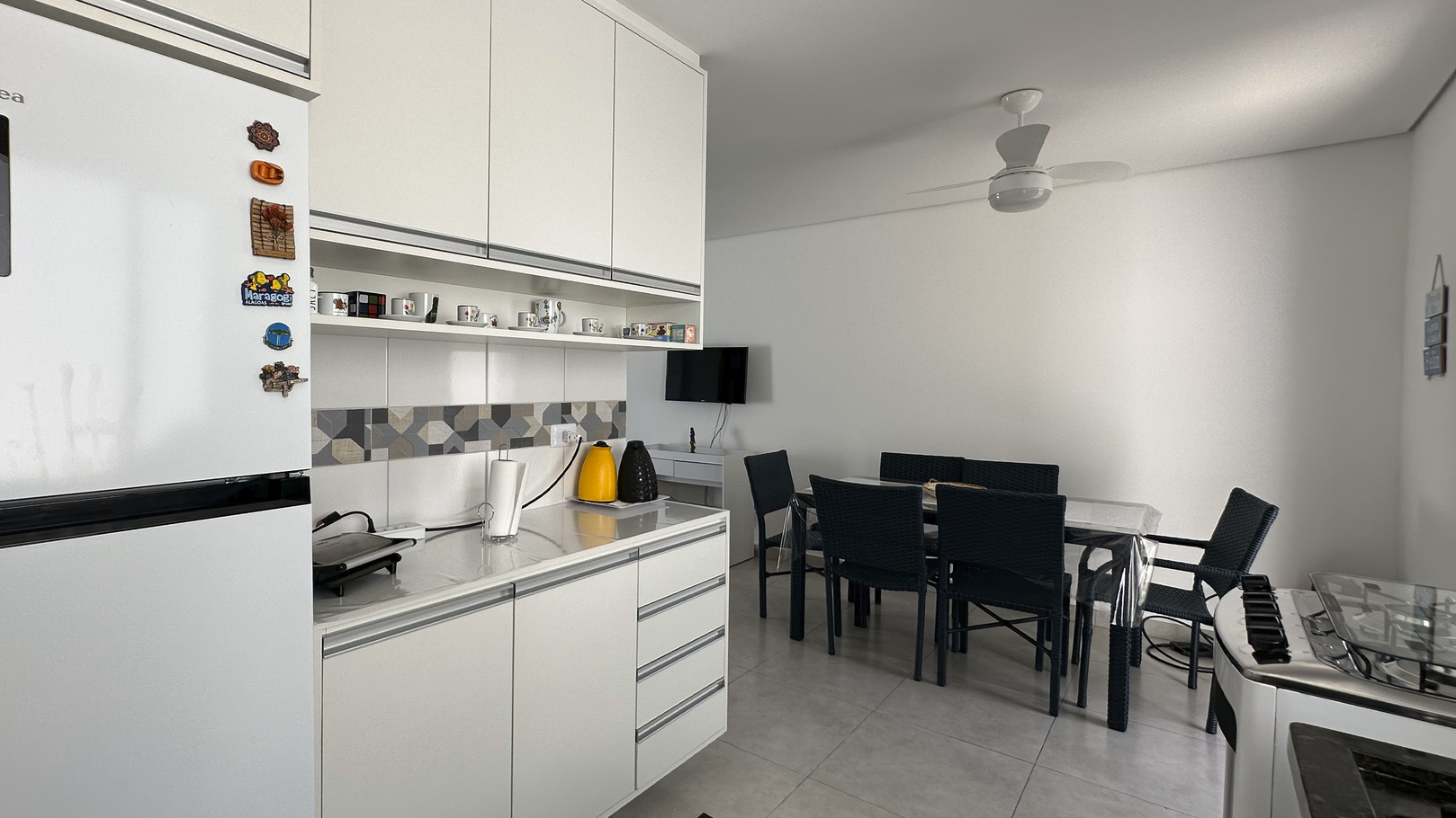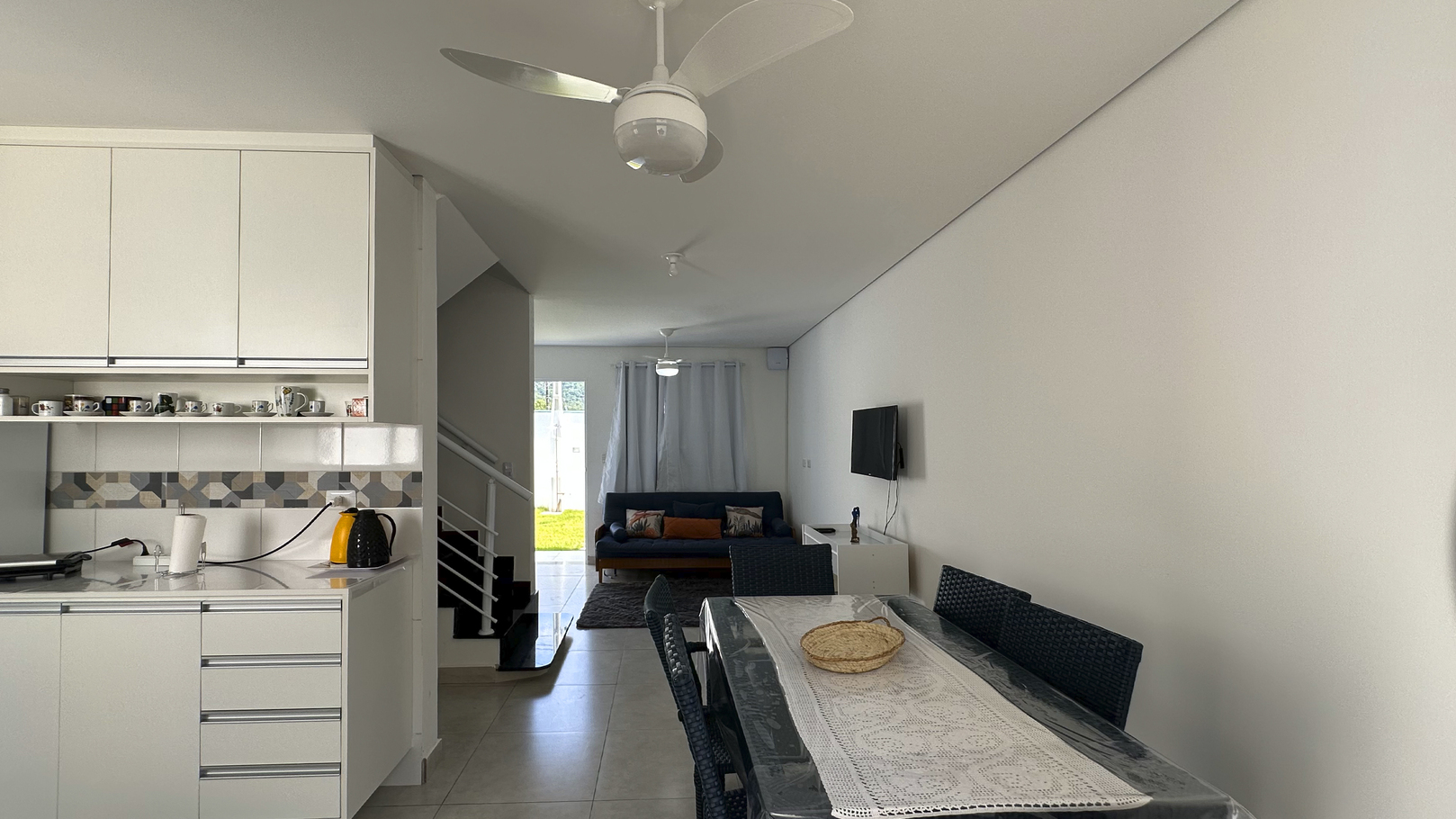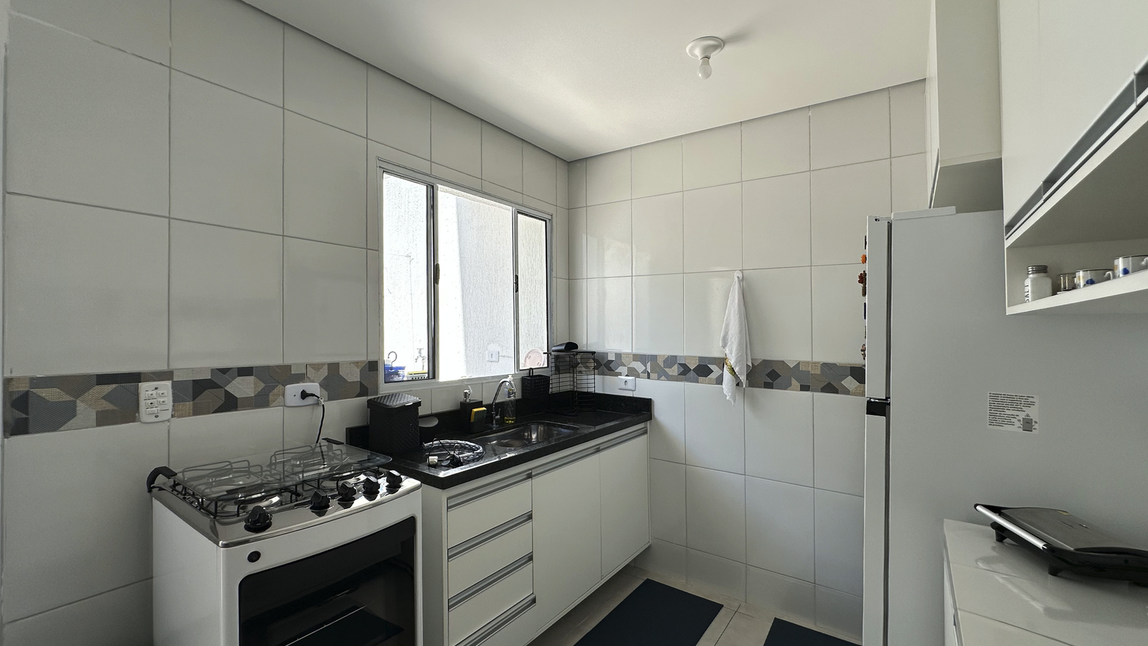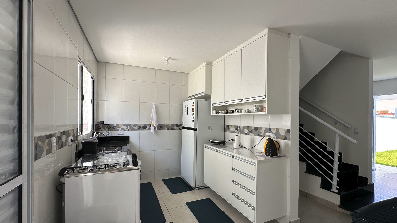 - A cozinha é equipada com diversos utensílios, incluindo fogão, forno, geladeira, liquidificador e torradeira (exceto sal, pimenta e óleo)