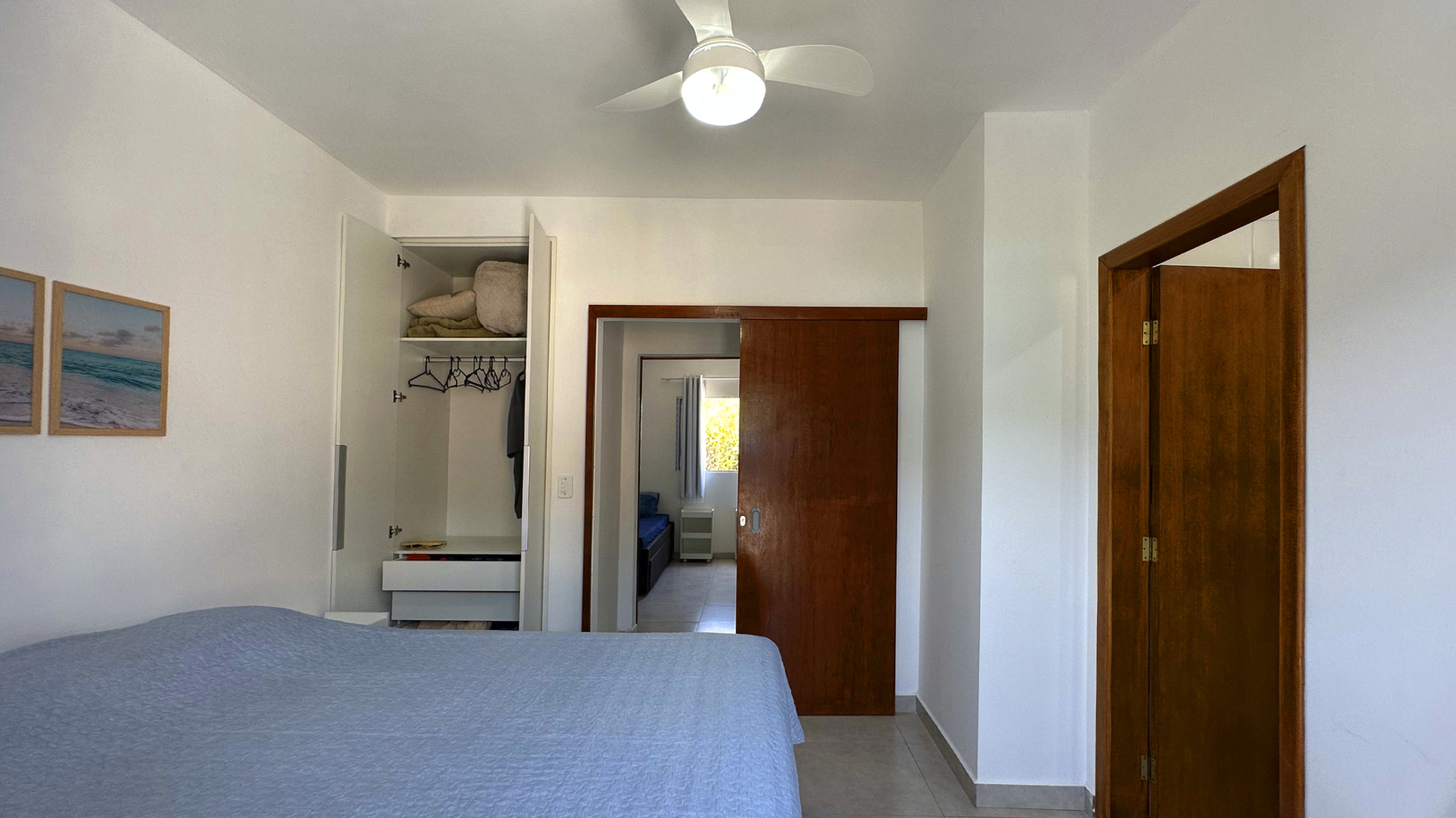 - As suítes possuem armário, protetor de colchão, ventilador de teto, chuveiro elétrico e box de vidro/acrílico