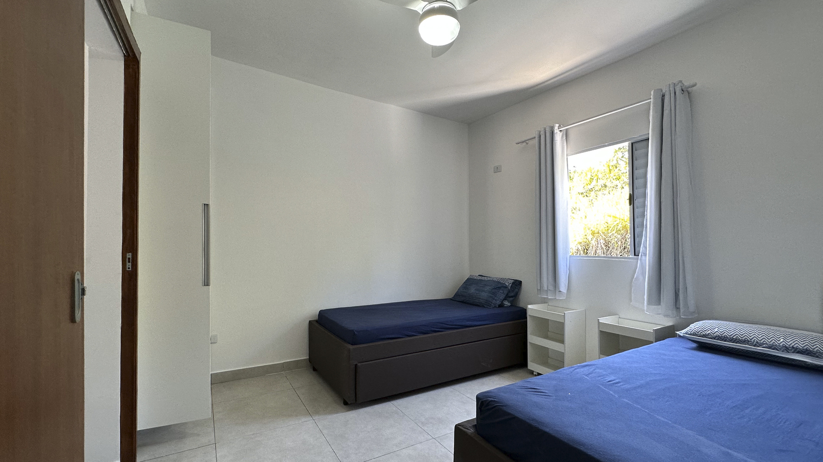 - Na suíte 2 há 2 camas de solteiro e 2 colchões extra de solteiro