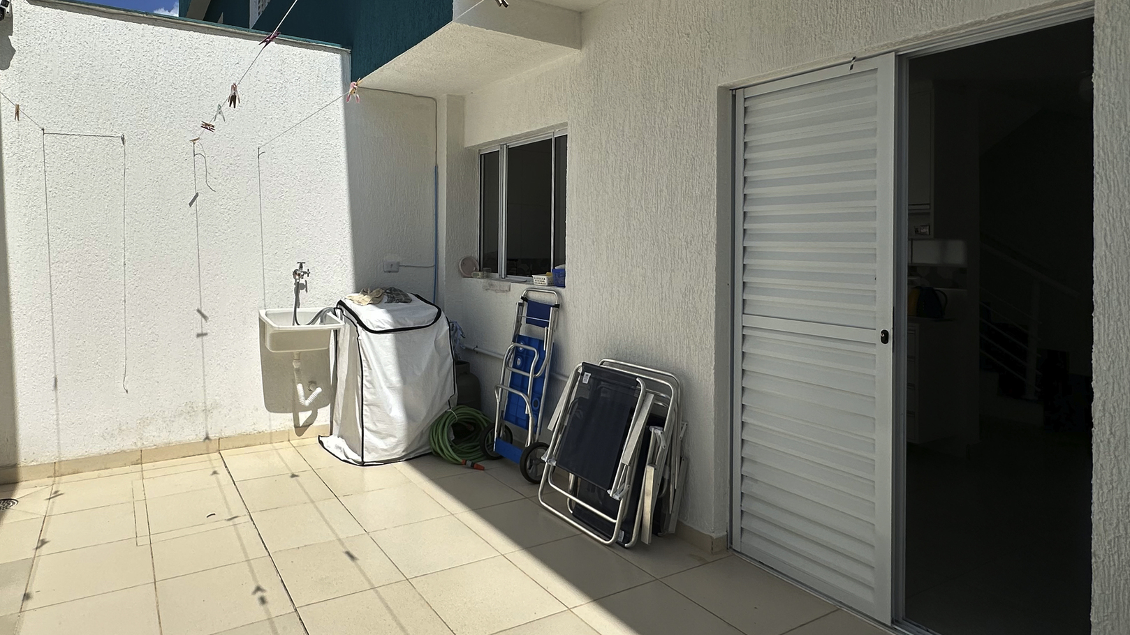 - Máquina de lavar e espaço para estender suas roupas