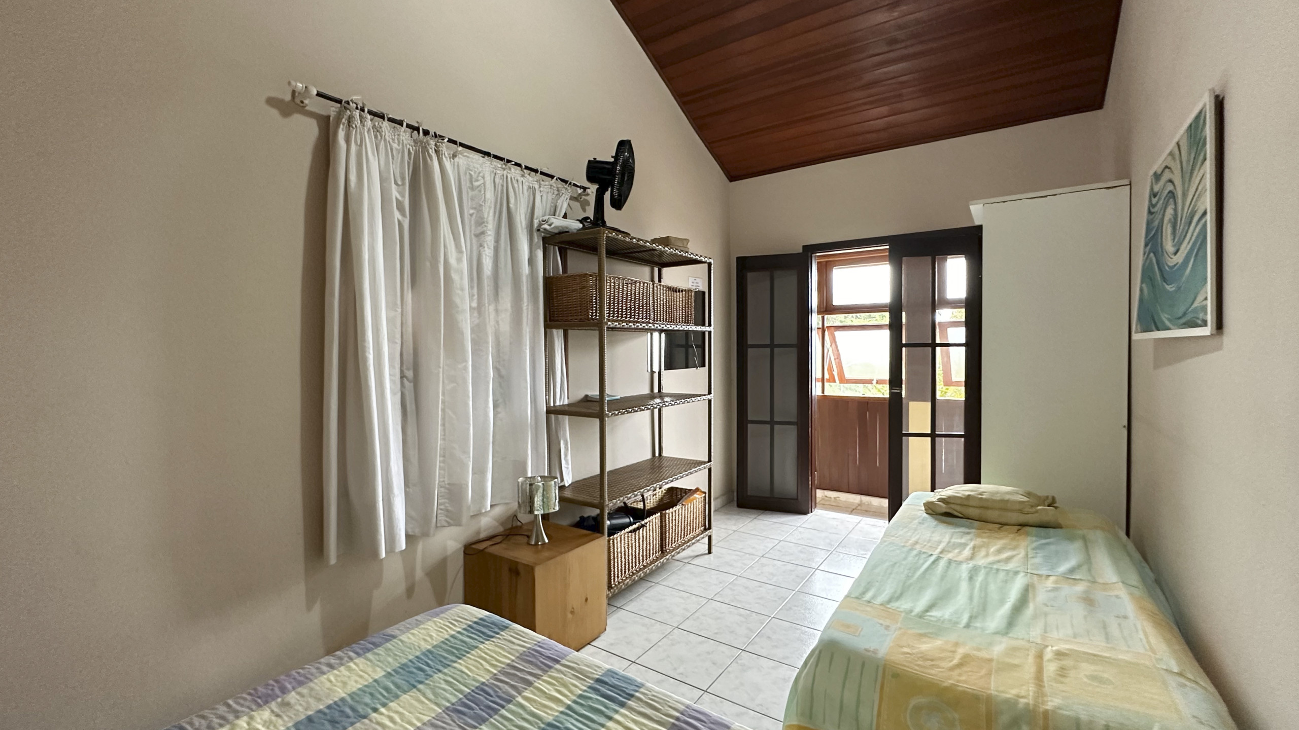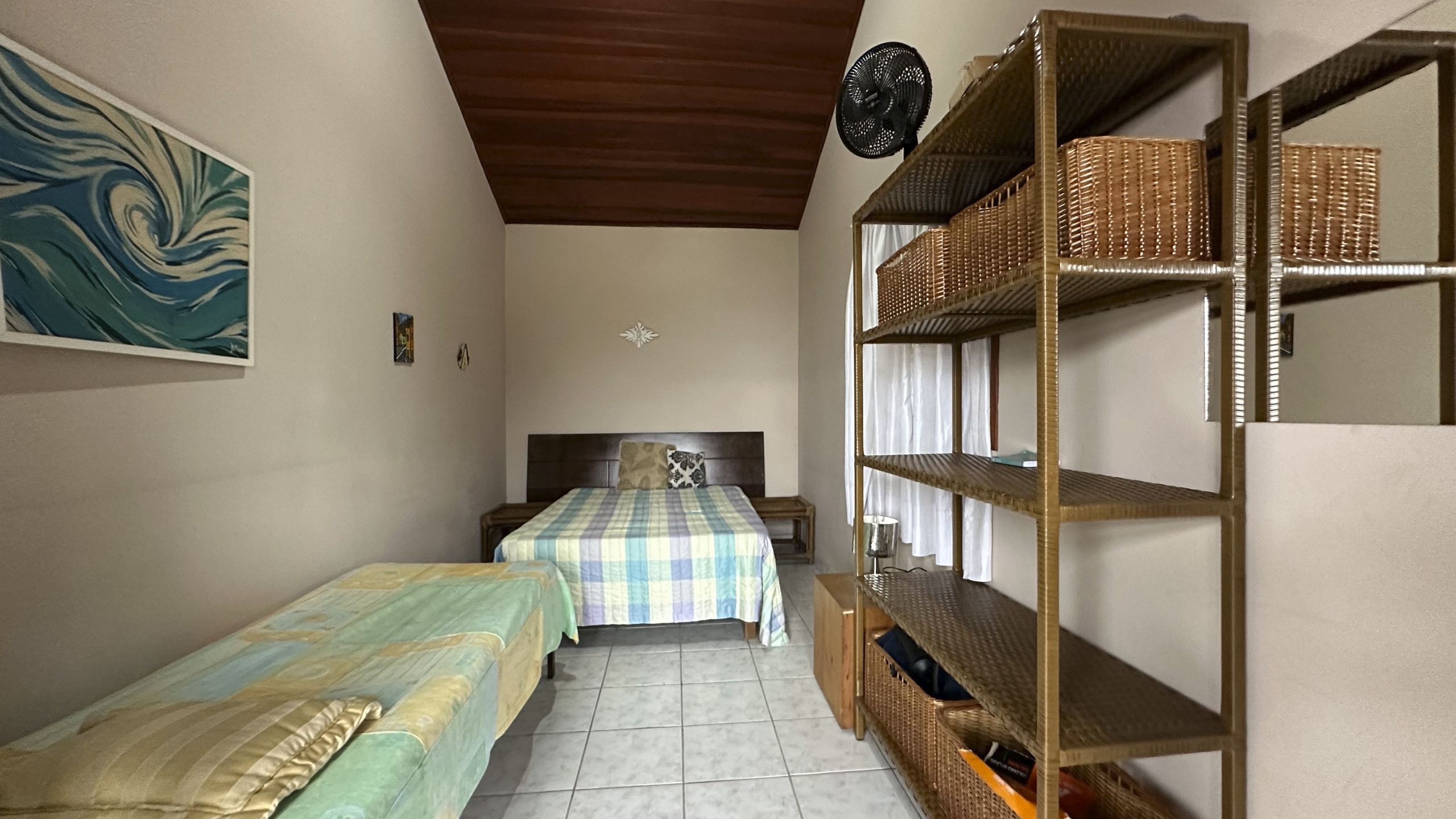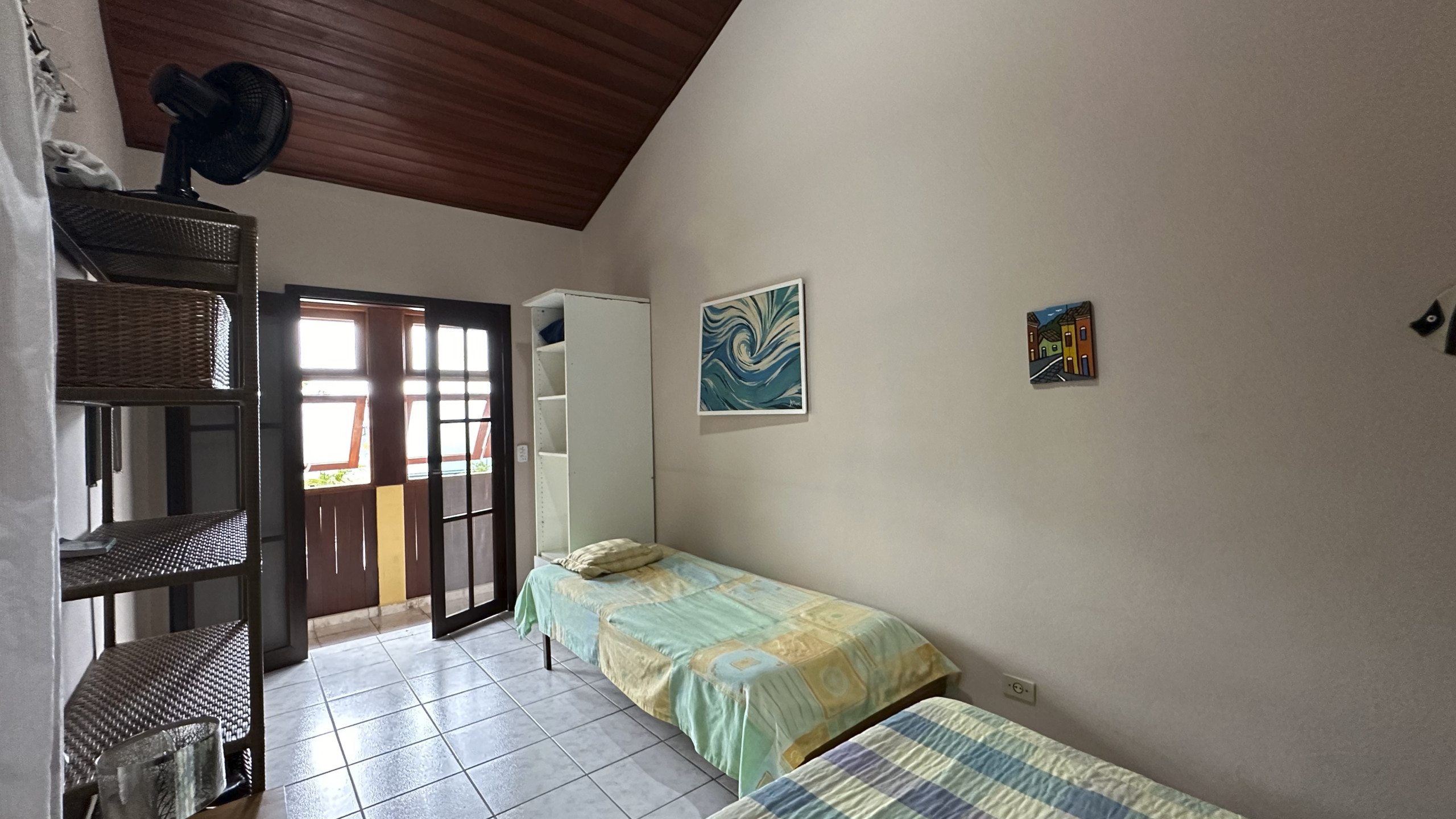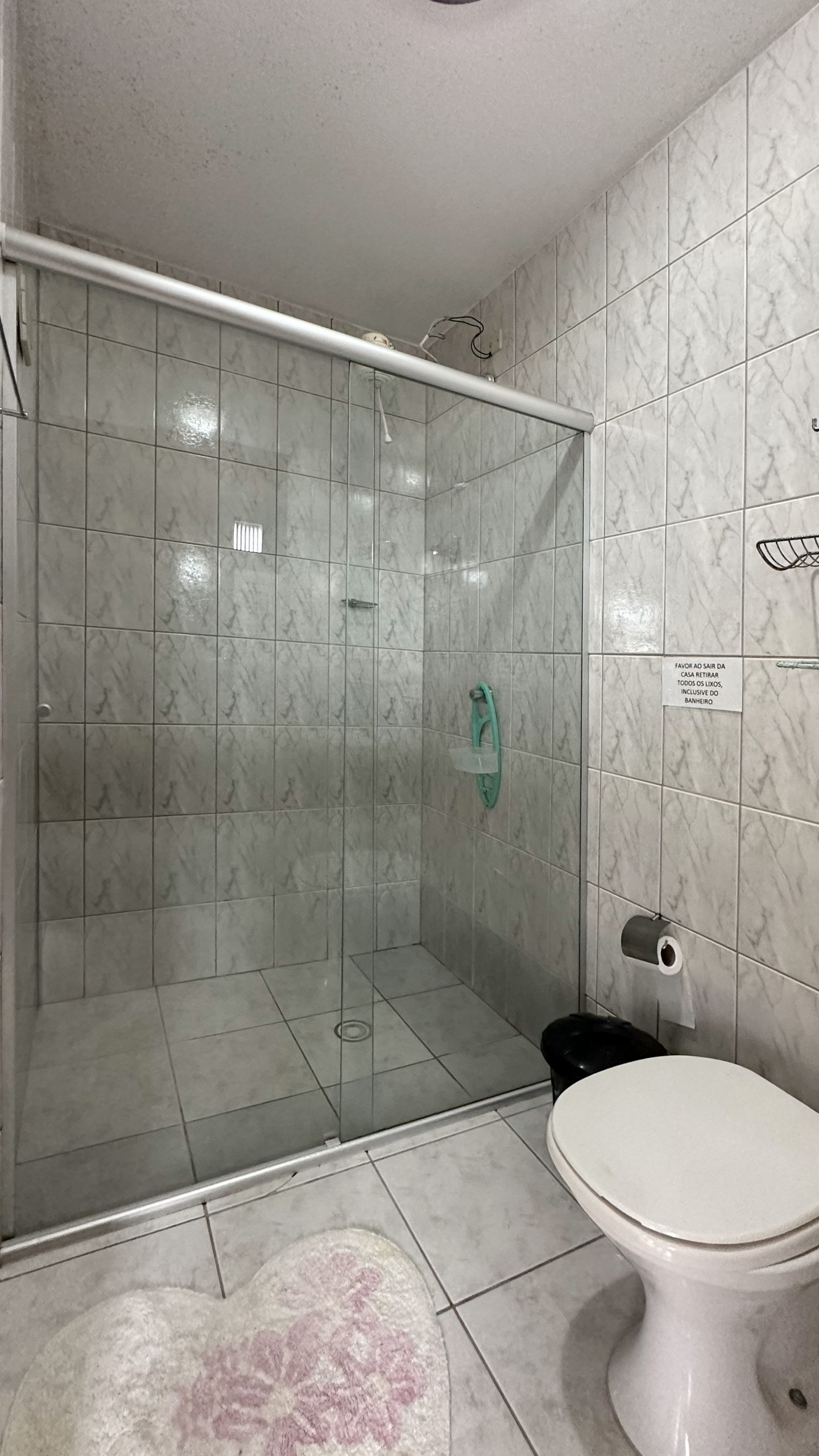 - Suíte com 1 cama de solteiro, 1 cama de casal, chuveiro elétrico, box de vidro e secador de cabelo