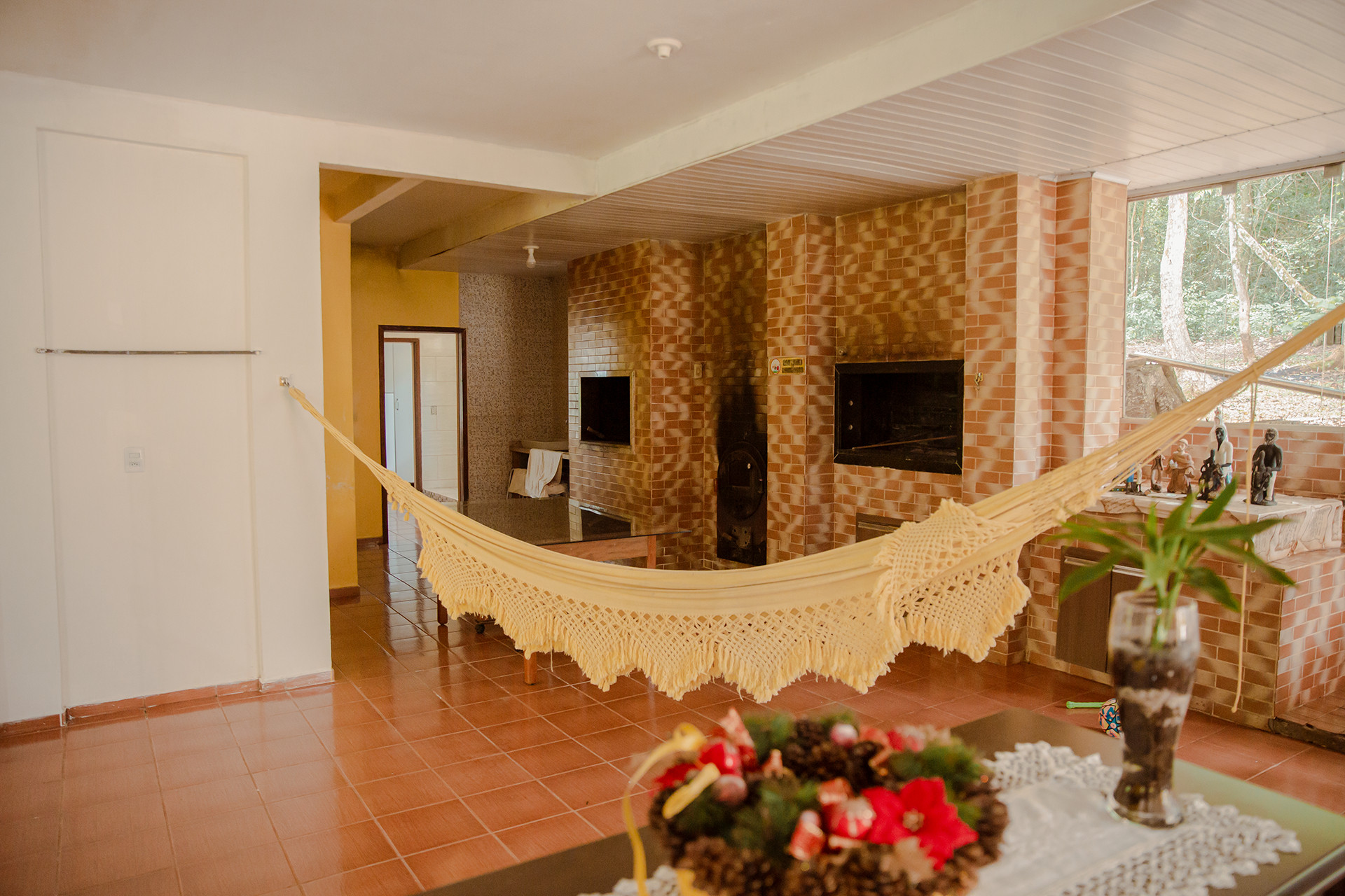 - Na sala você encontra cadeira, mesa de centro e poltrona