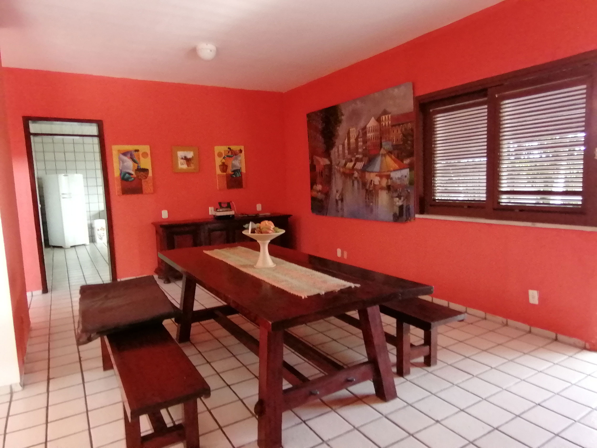 - Mesa de jantar na cozinha com 4 lugares e outra mesa estilo picnic na sala de jantar