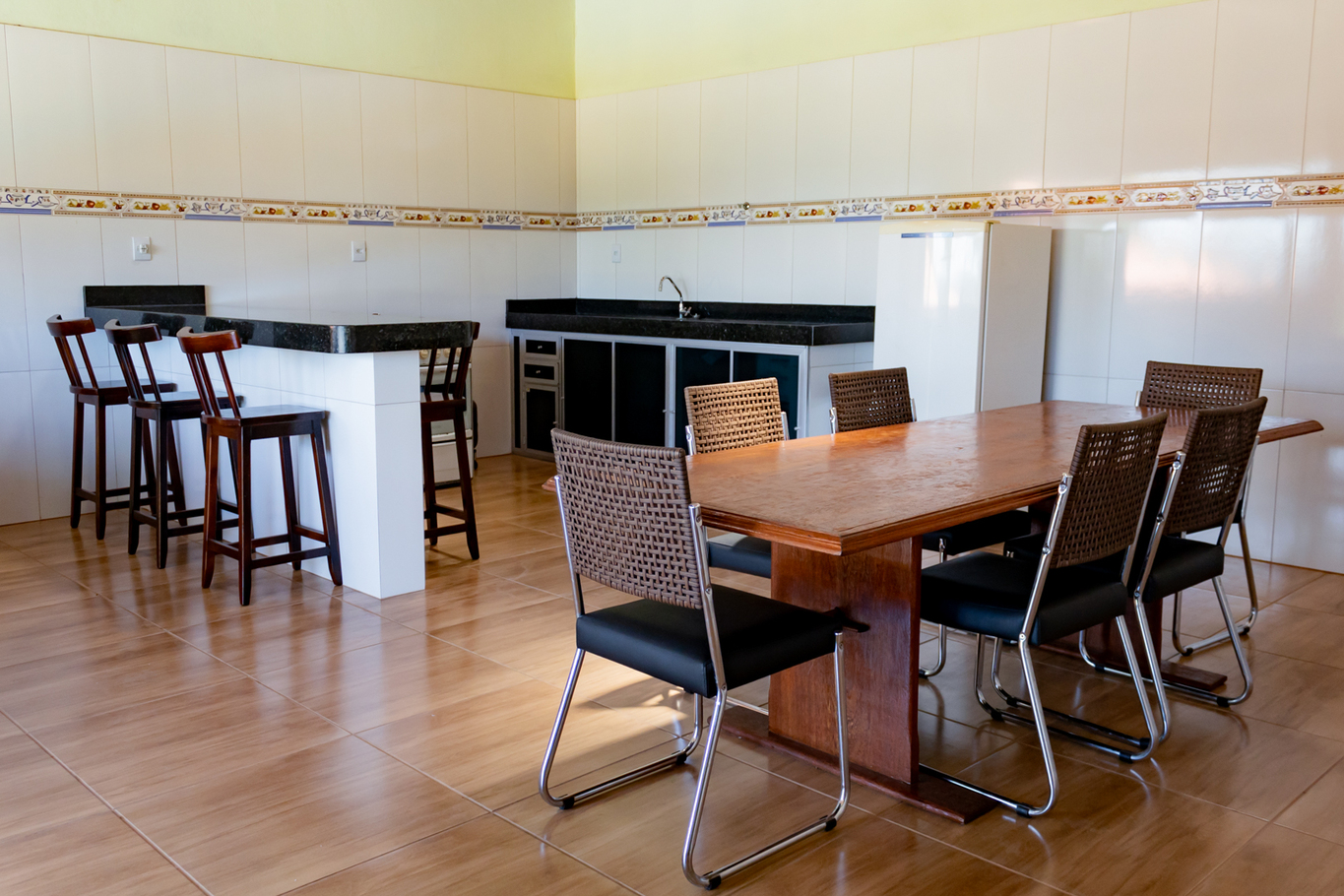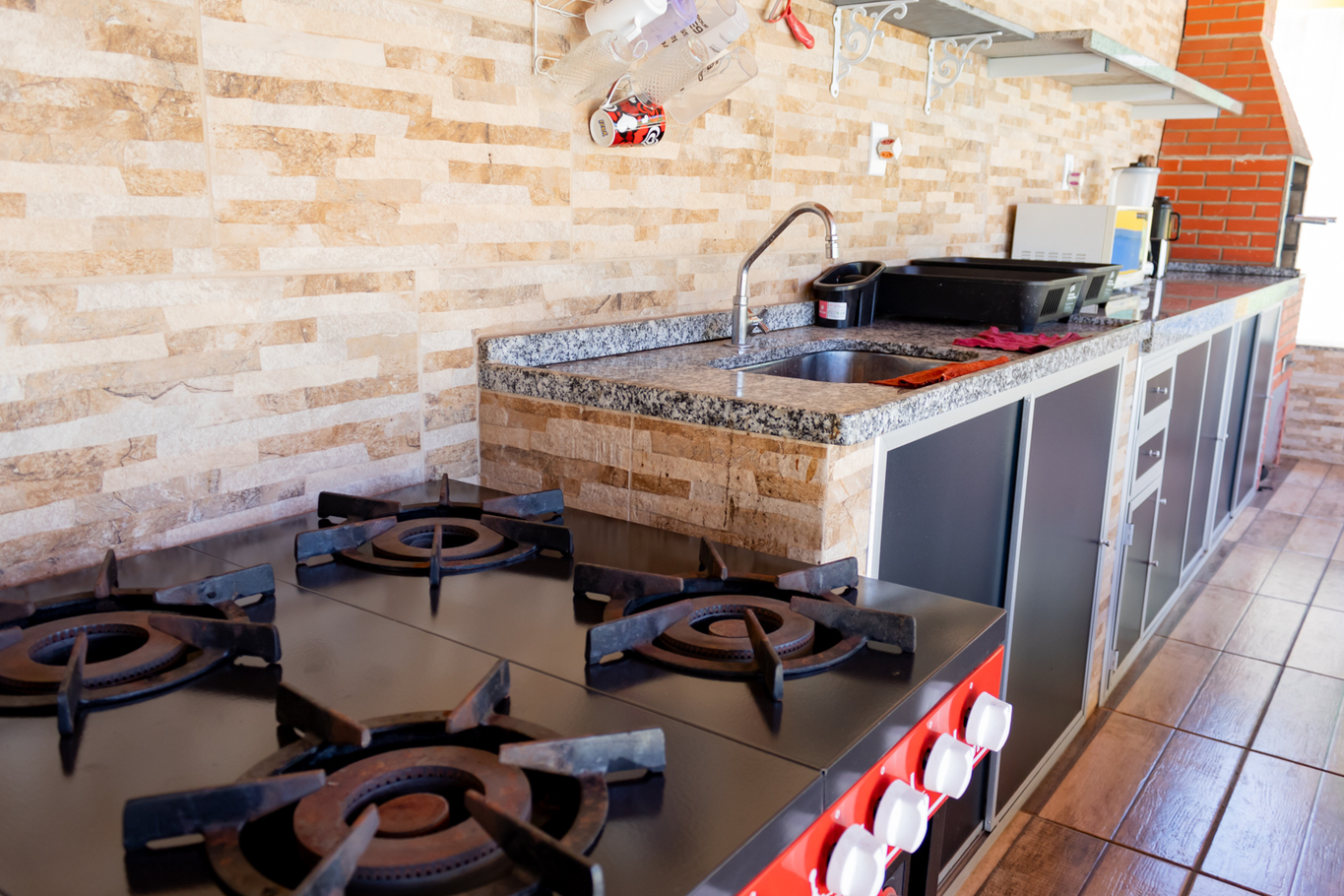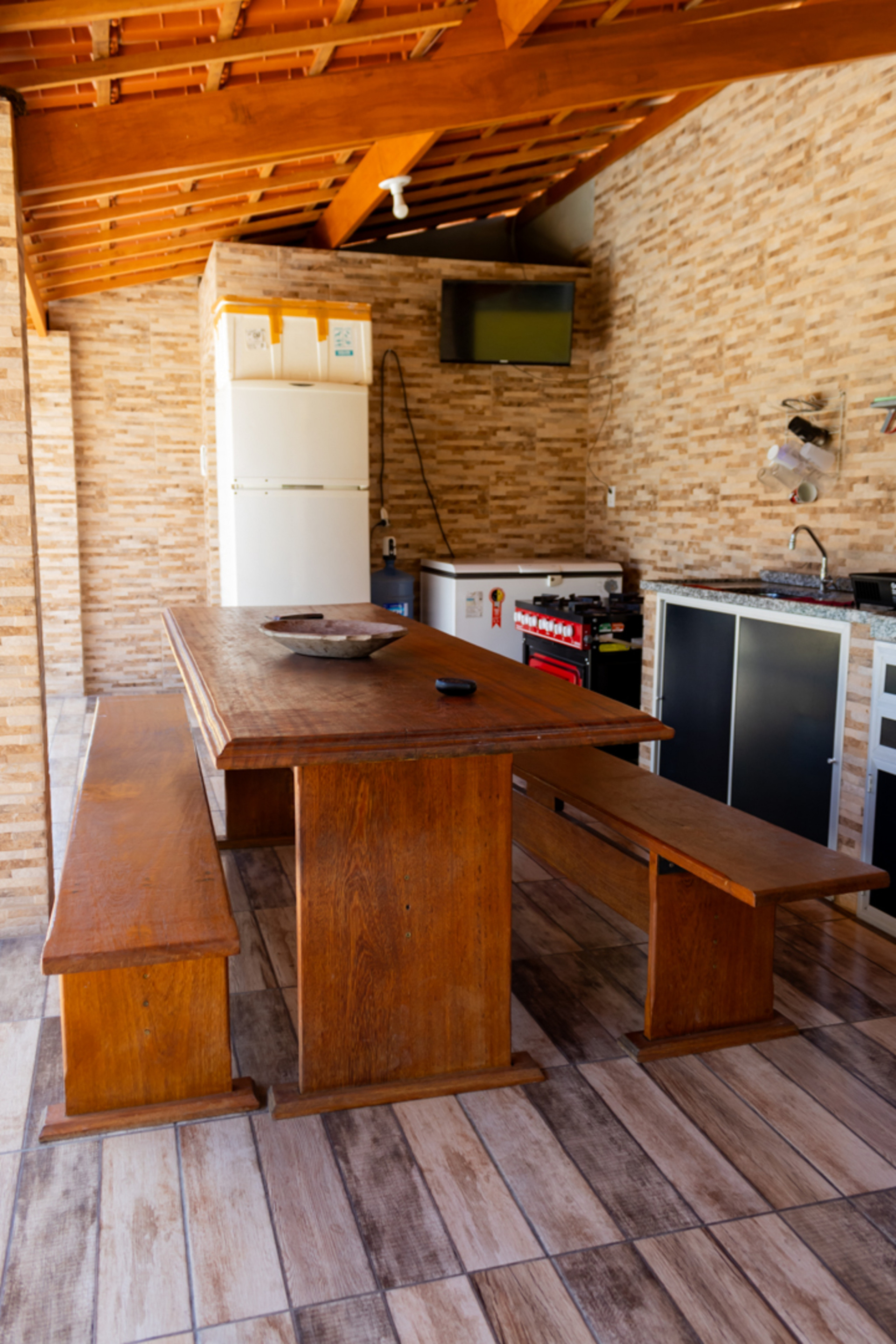 - 1 das cozinhas é rústica e possui fogão à lenha