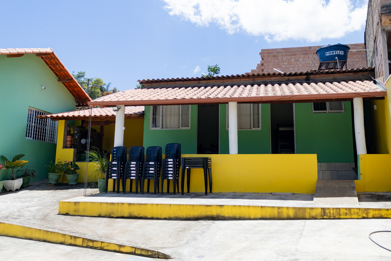 - A hospedagem é distribuída em duas casas (alugadas em conjunto)