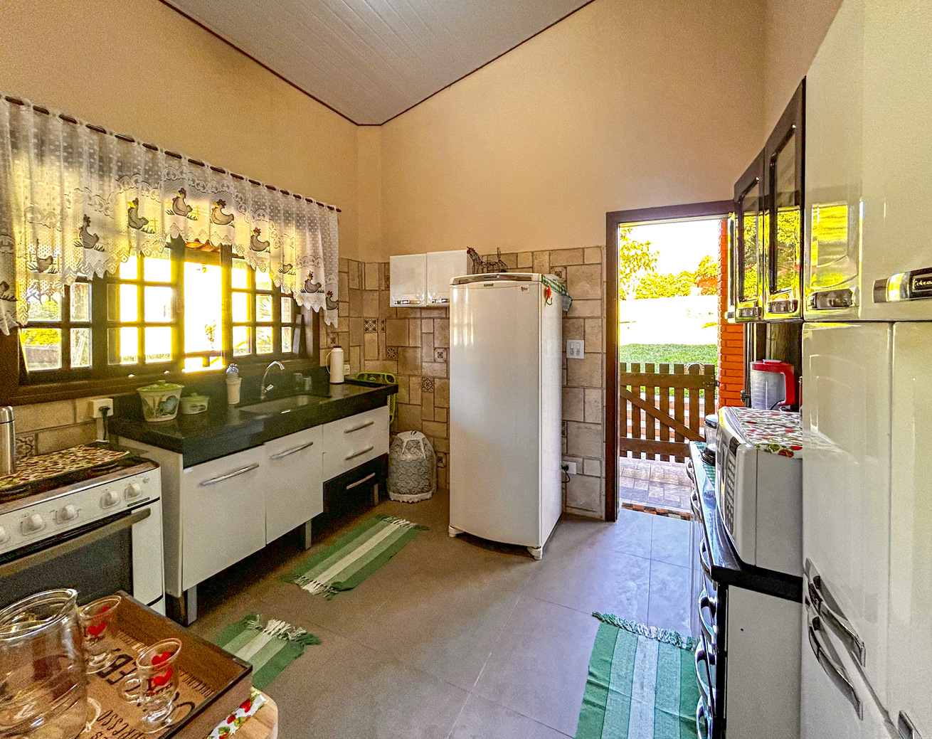 - A cozinha é equipada com diversos utensílios necessários para preparar ótimos pratos cafeteira, freezer, fritadeira, fogão, forno, geladeira, liquidificador, micro-ondas e torradeira