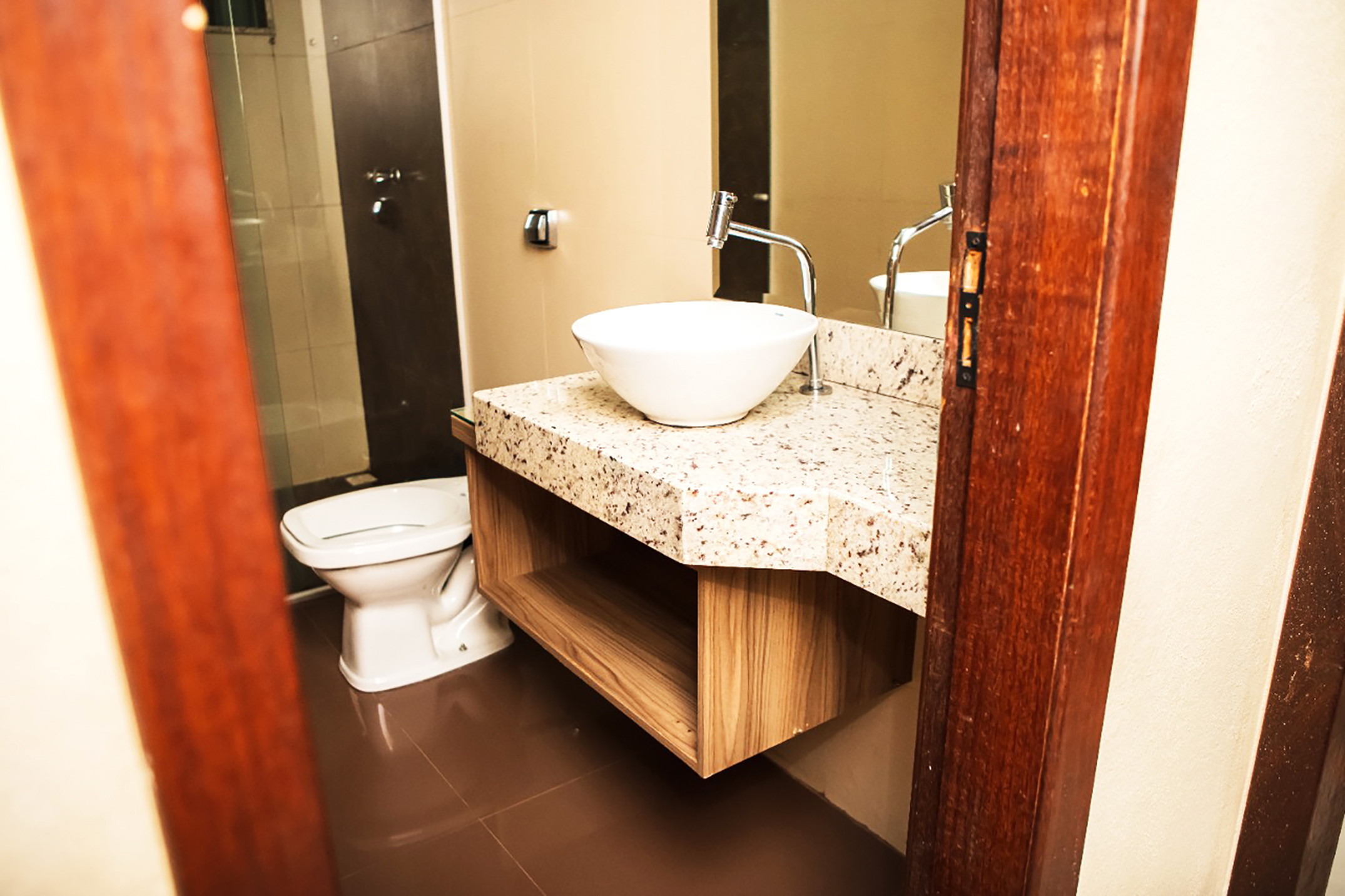 - Banheiros equipados com chuveiro elétrico e um deles possui box de vidro. Há, ainda, um secador de cabelo