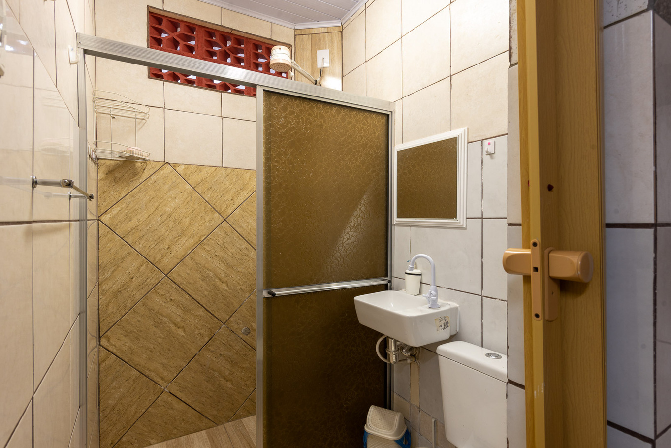 - Os banheiros possuem chuveiro elétrico e box de vidro/acrílico