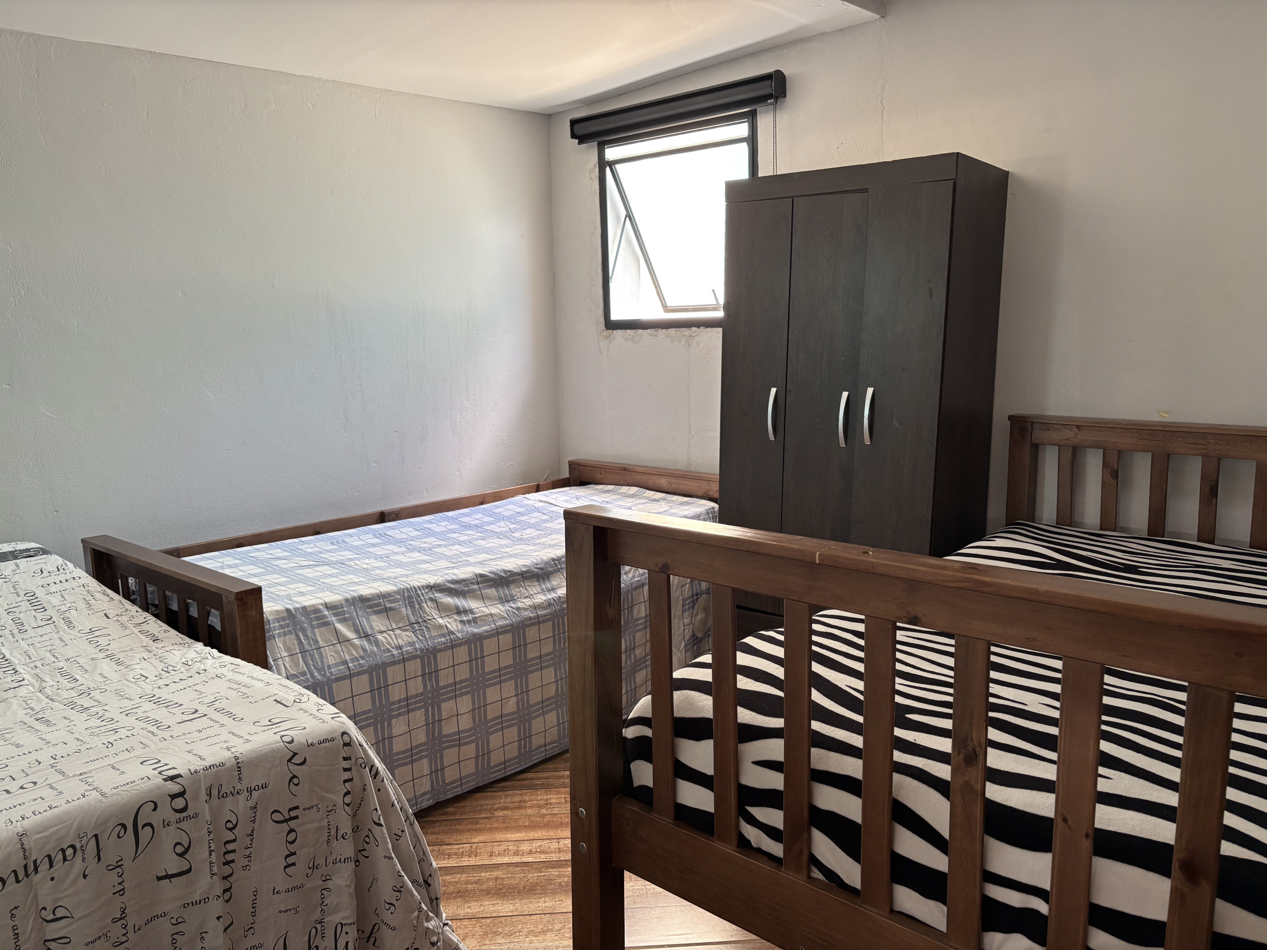 - No quarto 1 há 1 cama de casal e 1 cama de solteiro