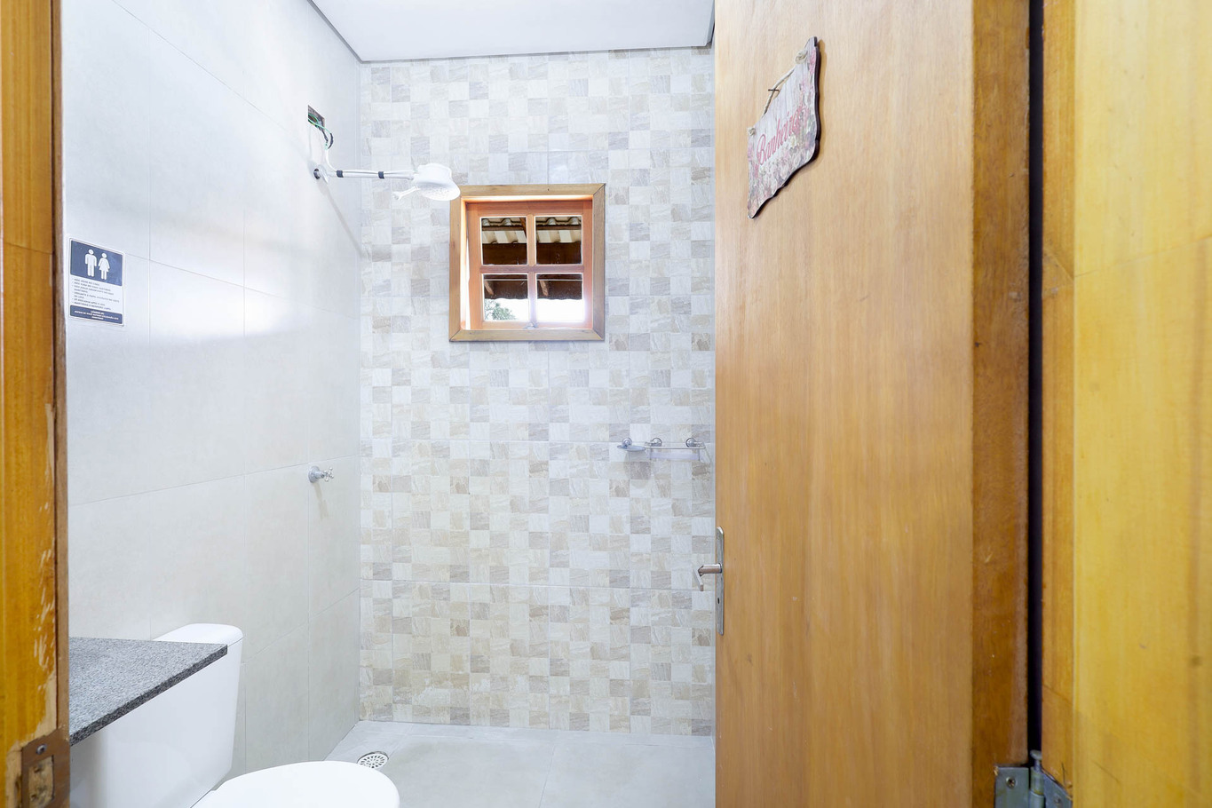 - Os banheiros sociais têm chuveiro elétrico e não há box