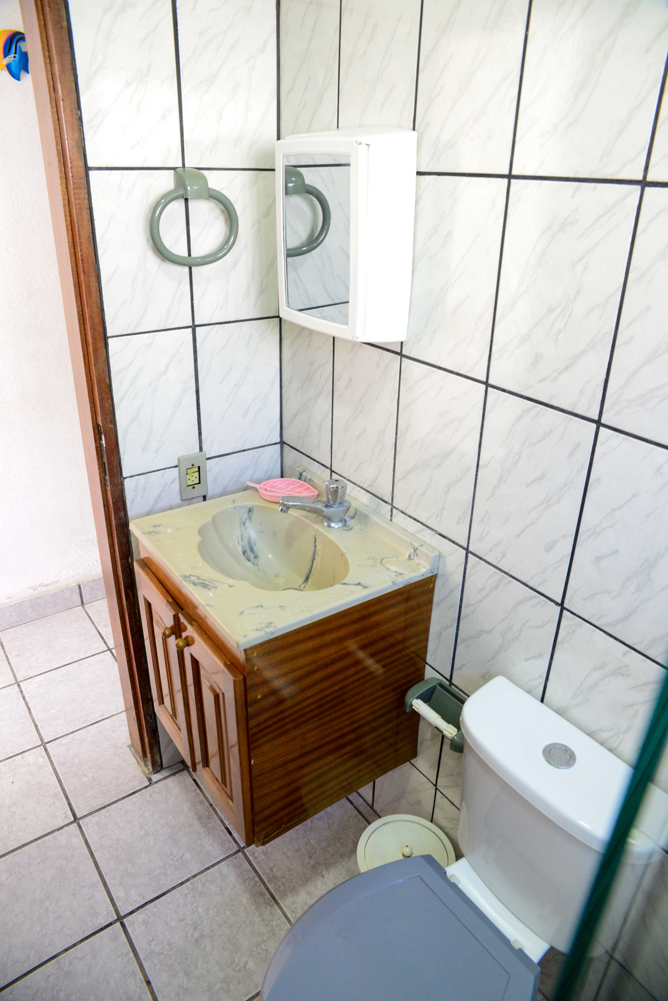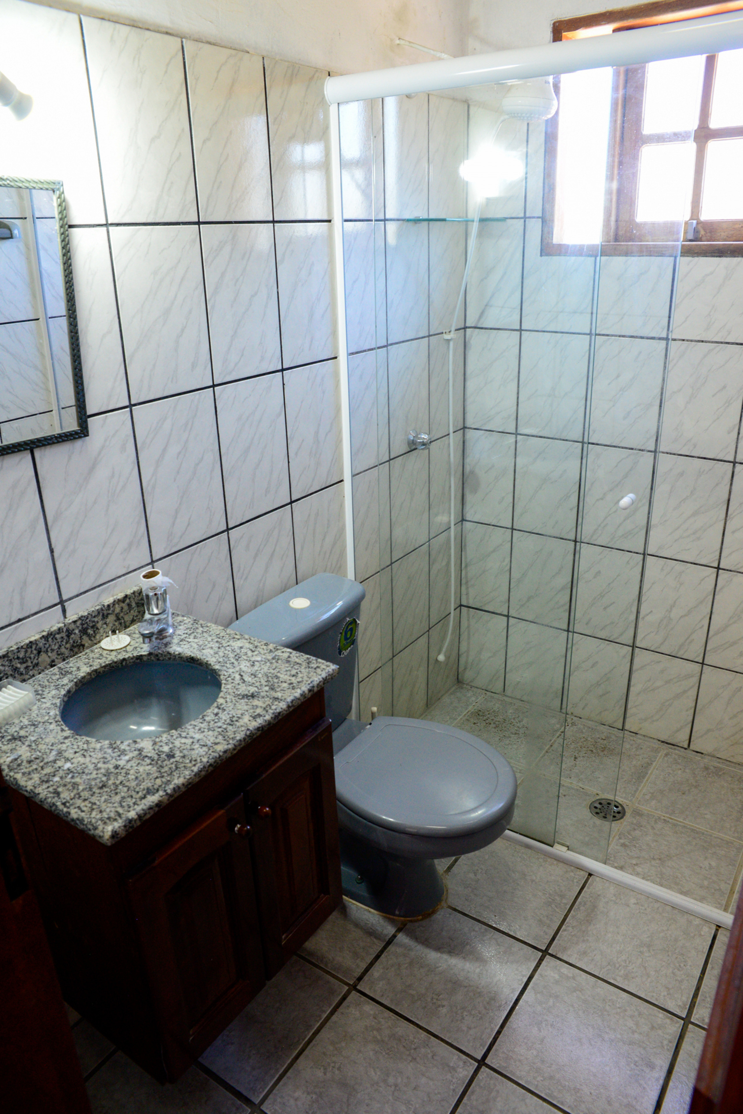 - Os banheiros têm chuveiro elétrico e box de vidro