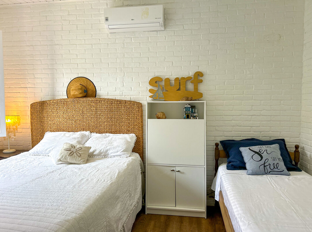 - Na suíte 2 há 1 cama de solteiro e 1 cama queen size