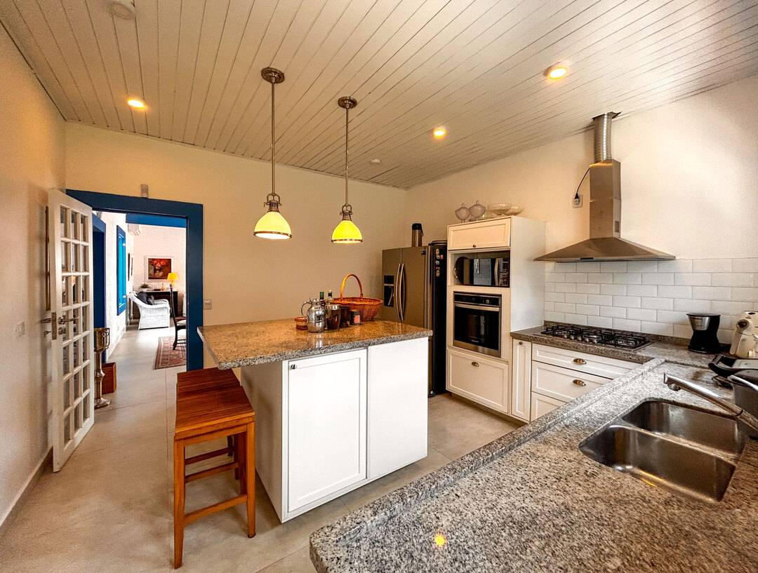 - A cozinha é equipada com todos os utensílios necessários para preparar ótimos pratos, incluindo cafeteira, freezer, fogão, geladeira, liquidificador, microondas, máquina de lavar louça e torradeira