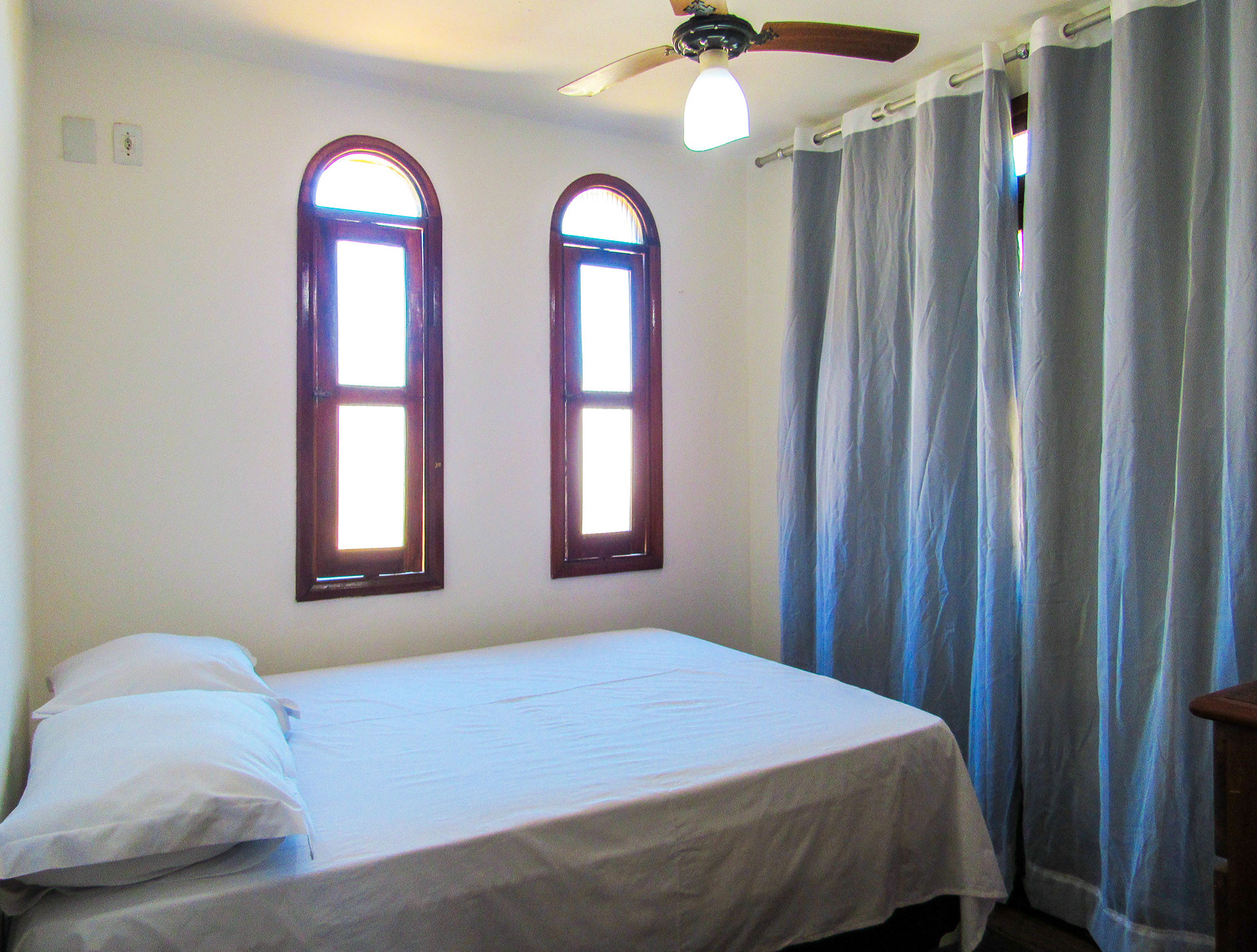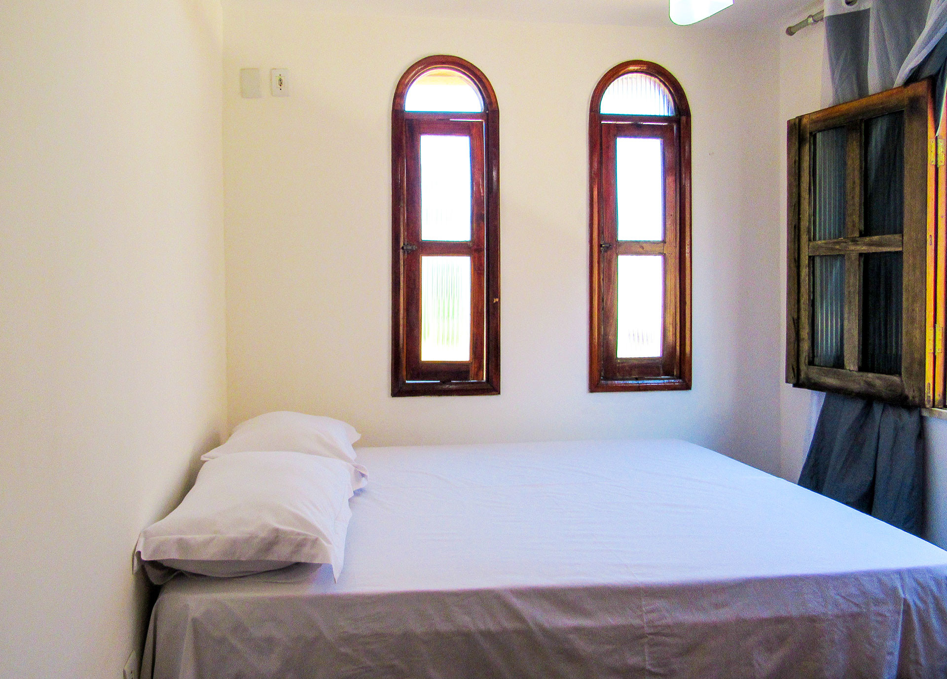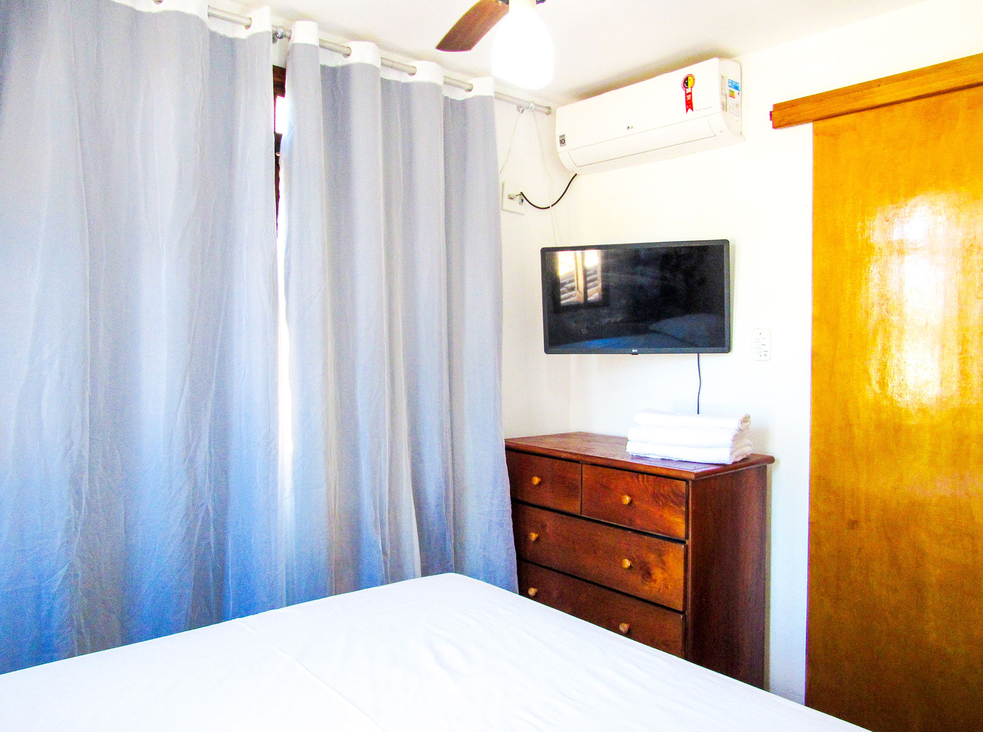 - Suítes equipadas com armário, edredom / cobertor, protetor de colchão, ventilador de teto, ar-condicionado, chuveiro elétrico e box de vidro/acrílico