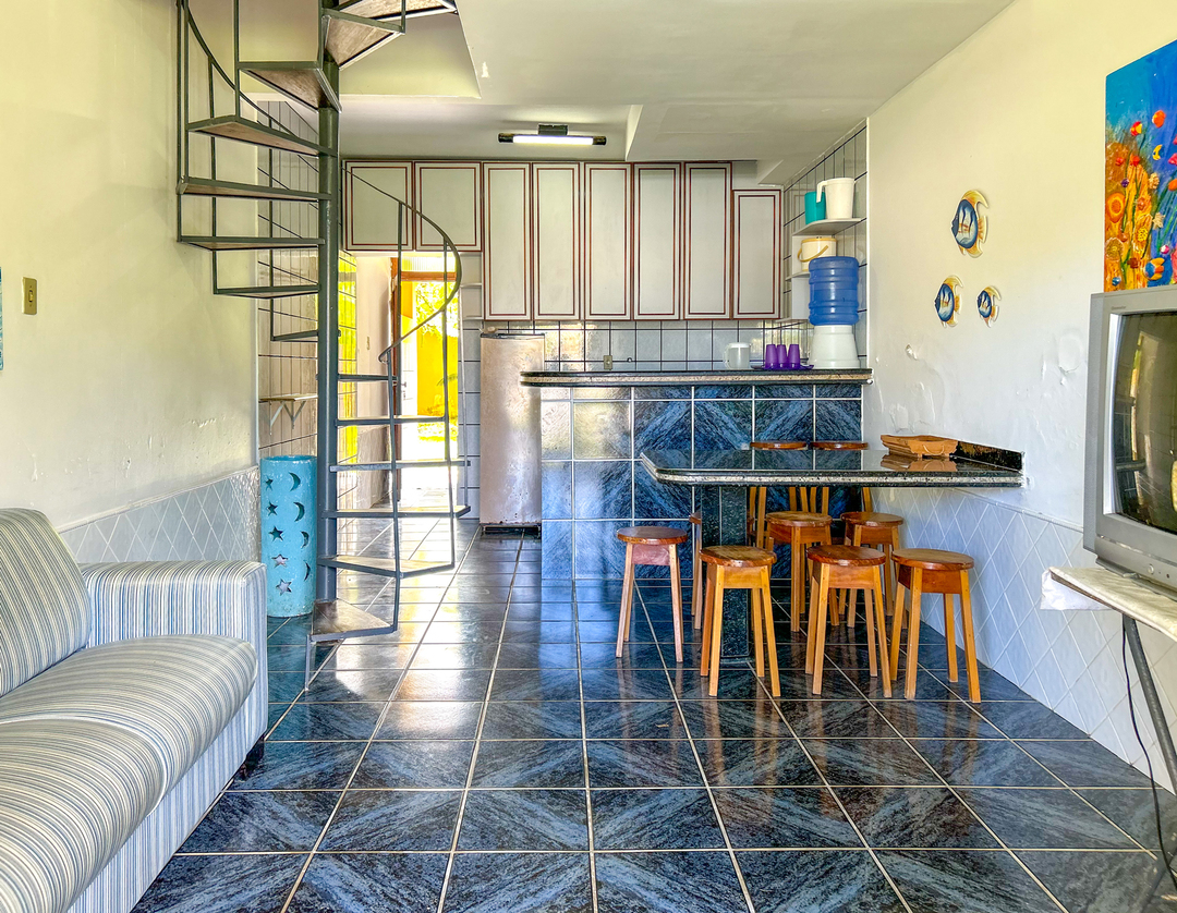 - A cozinha é equipada com todos os utensílios necessários para preparar ótimos pratos, incluindo fogão, forno, geladeira, liquidificador e balcão