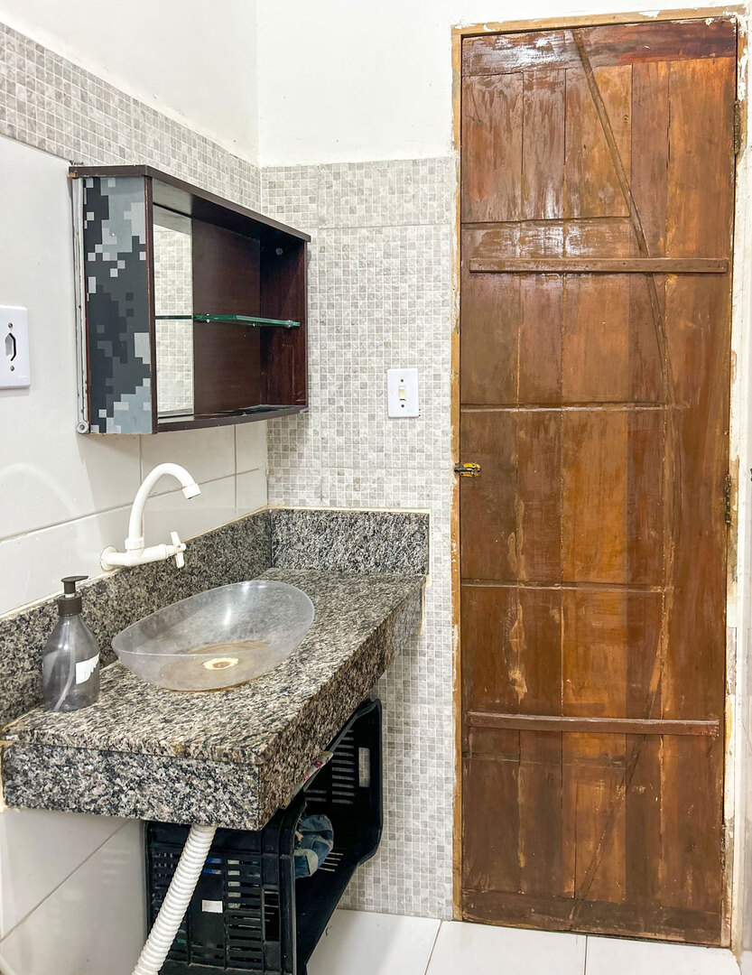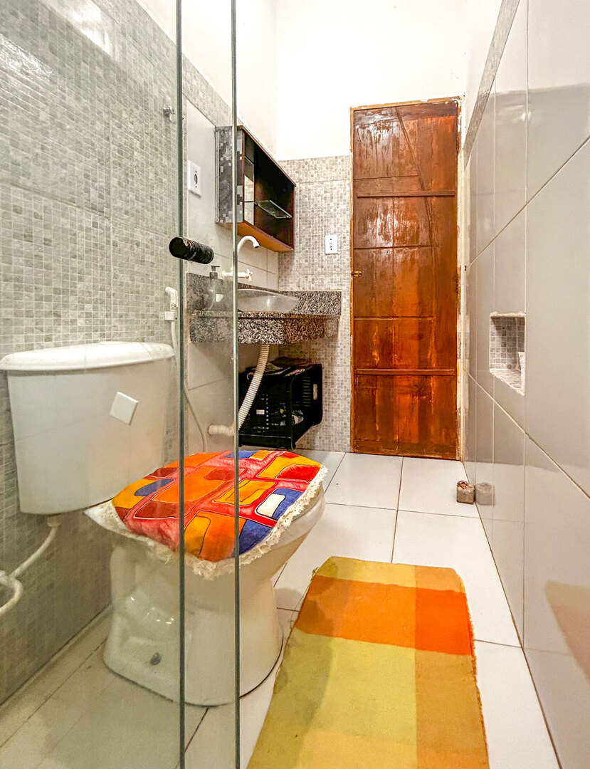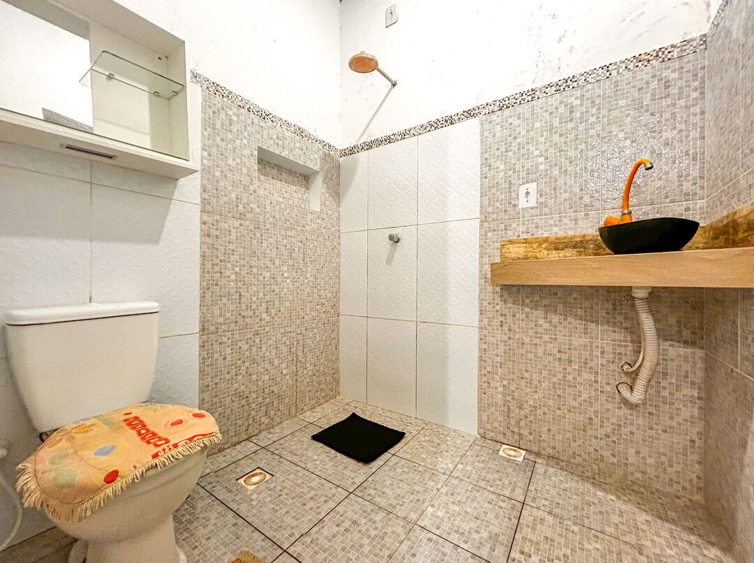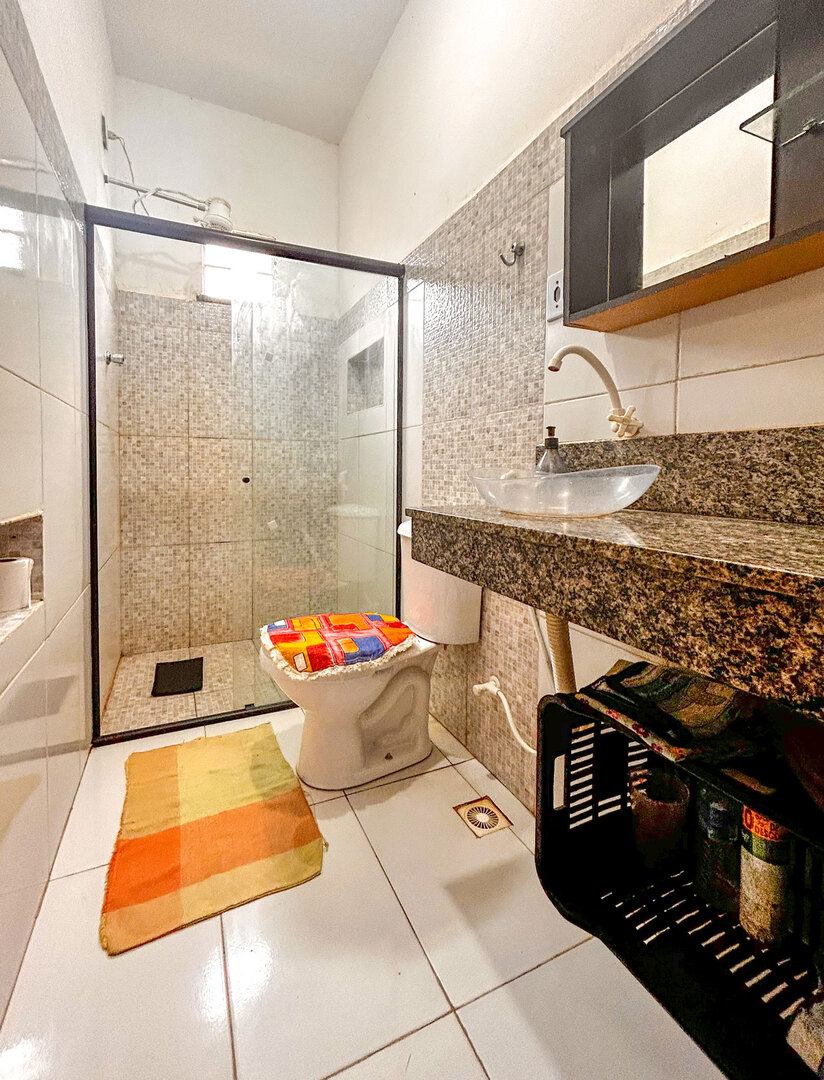 - Os banheiros têm chuveiro elétrico e box de vidro