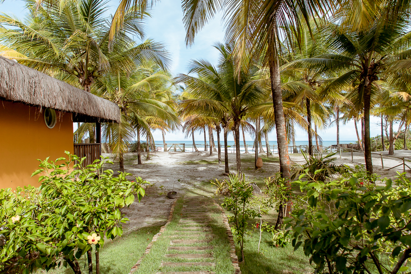 - Natureza exuberante ao redor, com coqueirais e águas cristalinas