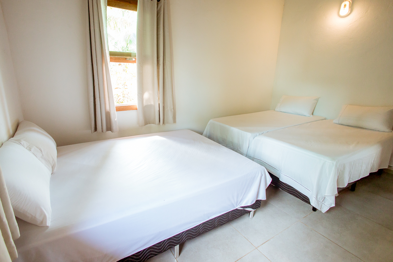 - No quarto 3 há 1 cama de casal e 2 camas de solteiro