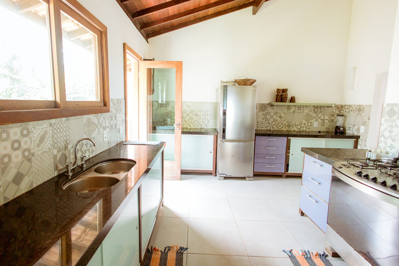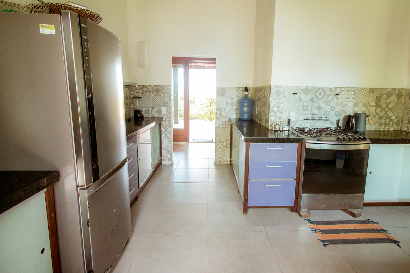 - A cozinha é equipada com diversos utensílios, incluindo cafeteira, freezer, fogão, forno, geladeira, liquidificador (exceto sal, pimenta e óleo)