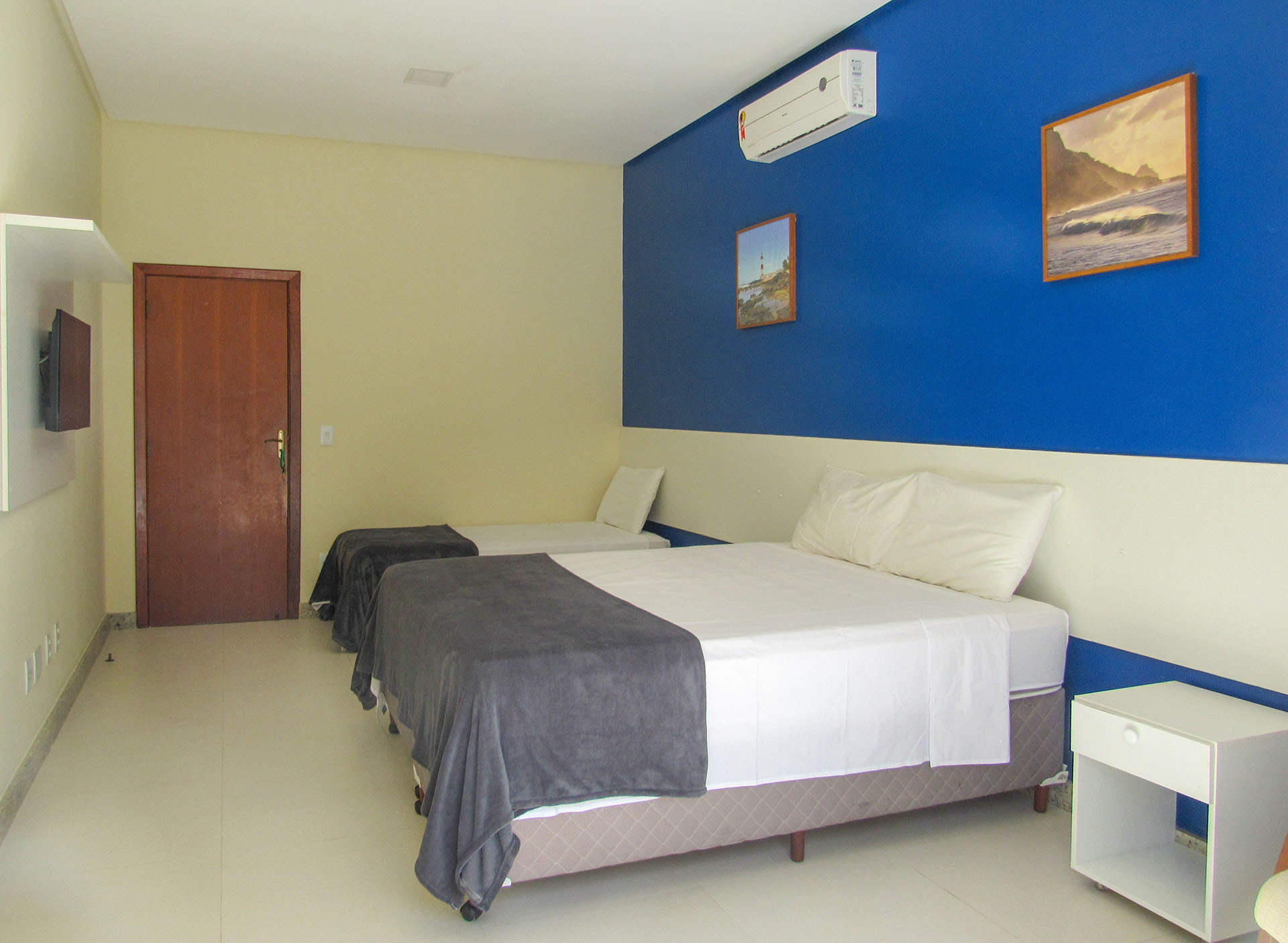 - Na suíte 1 há 1 cama de solteiro, 1 cama queen size e secador de cabelo