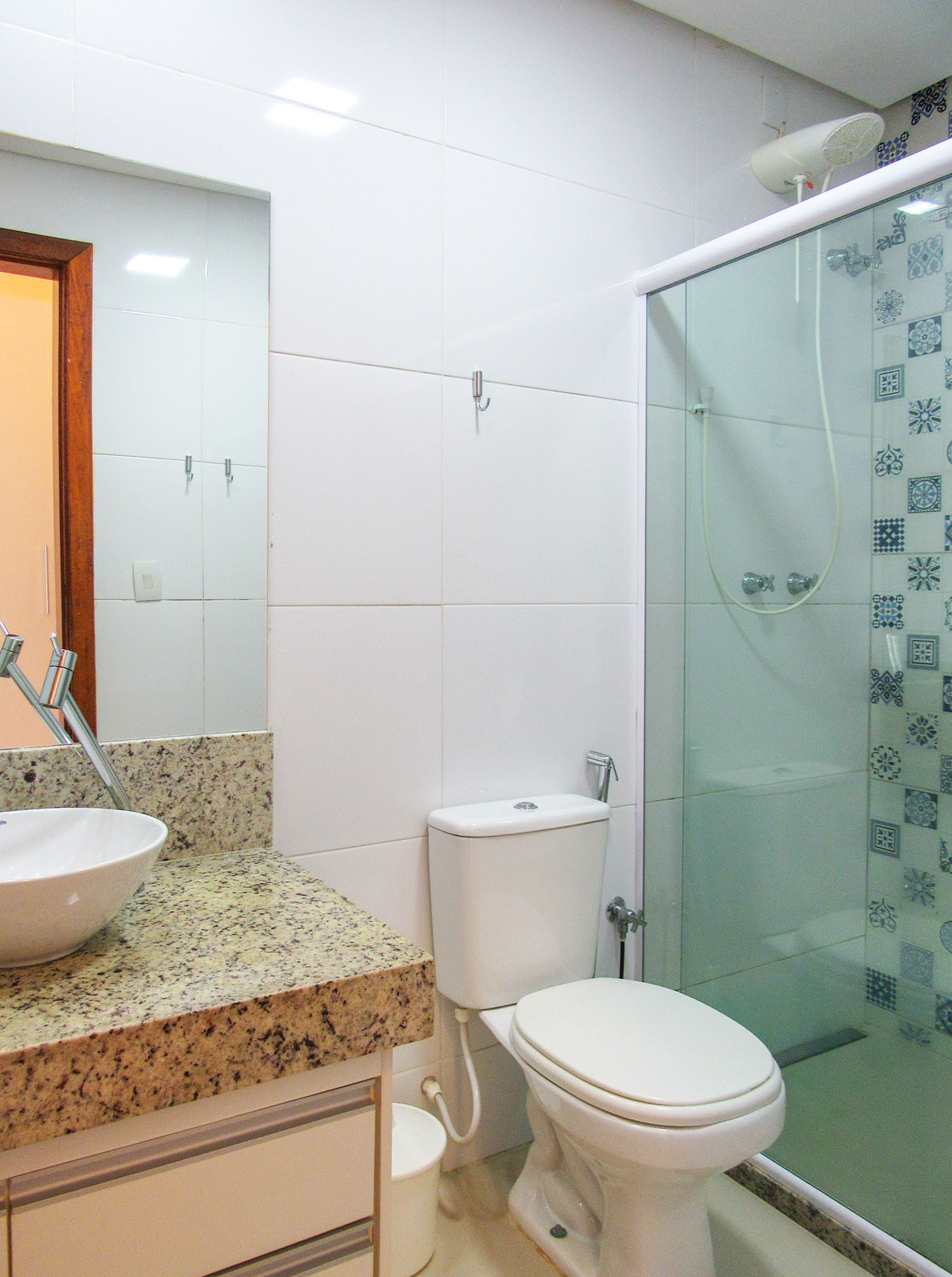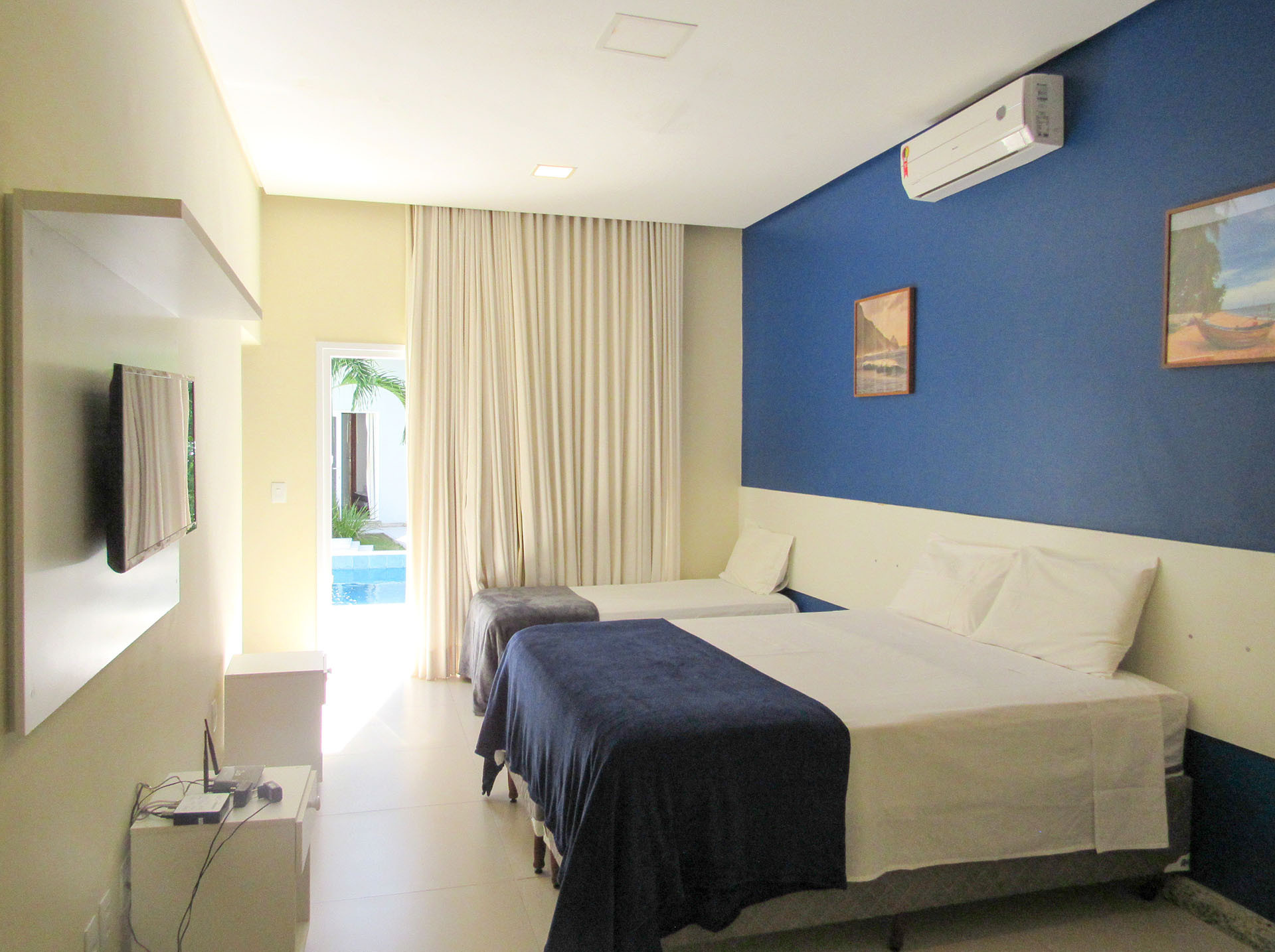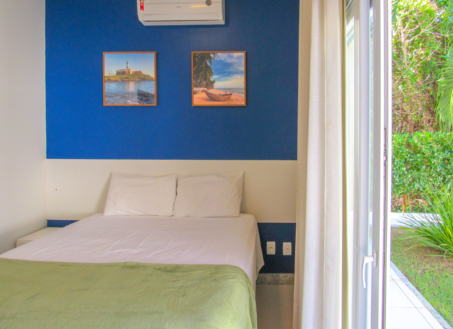 - Suítes com chuveiro elétrico, box de vidro/acrílico, armário e edredom / cobertor
