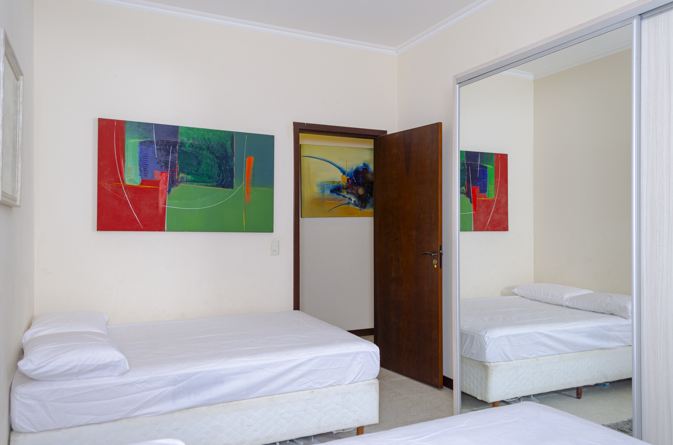 - No quarto 1 há 2 camas queen size e 1 cama de solteiro