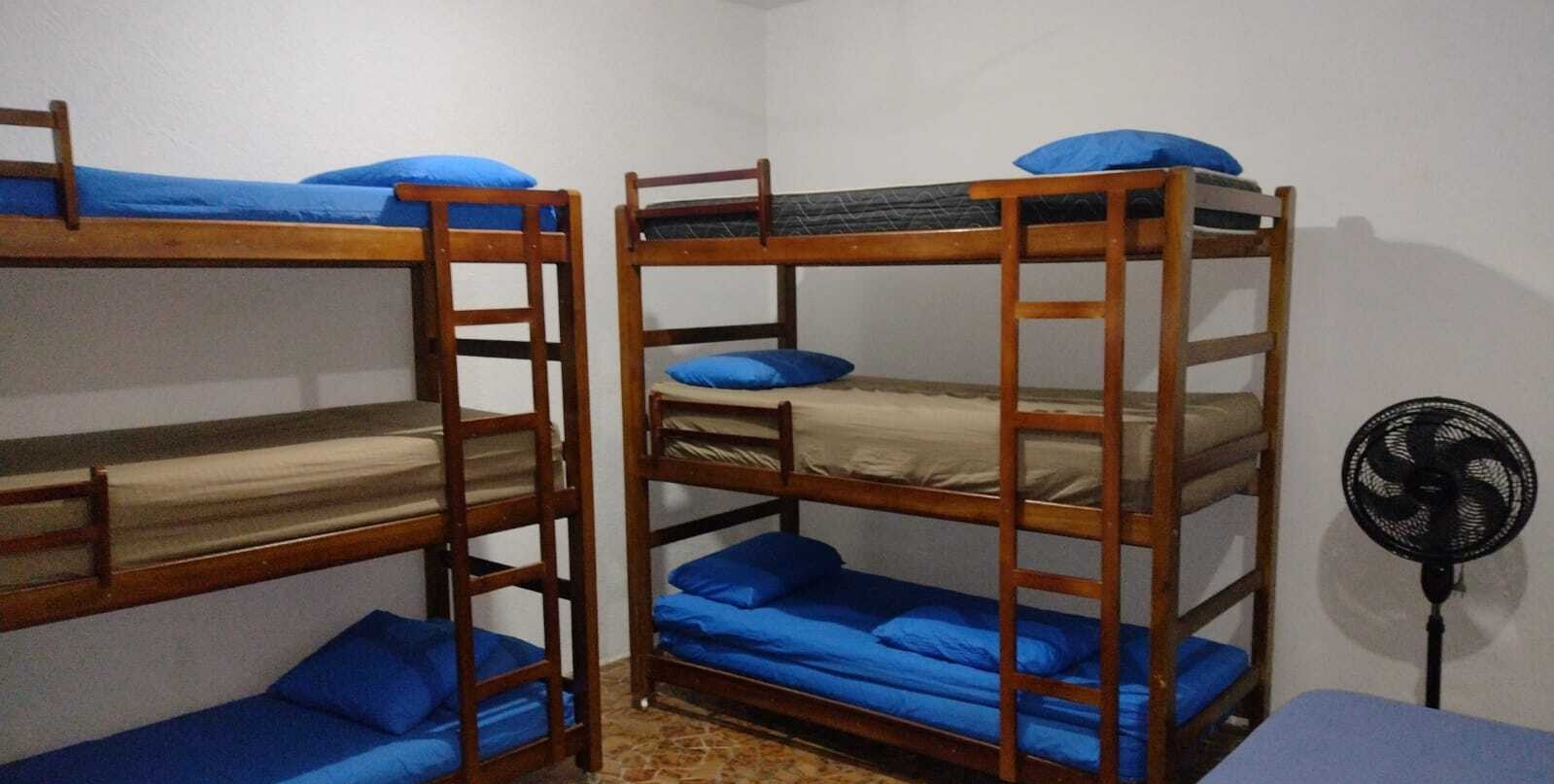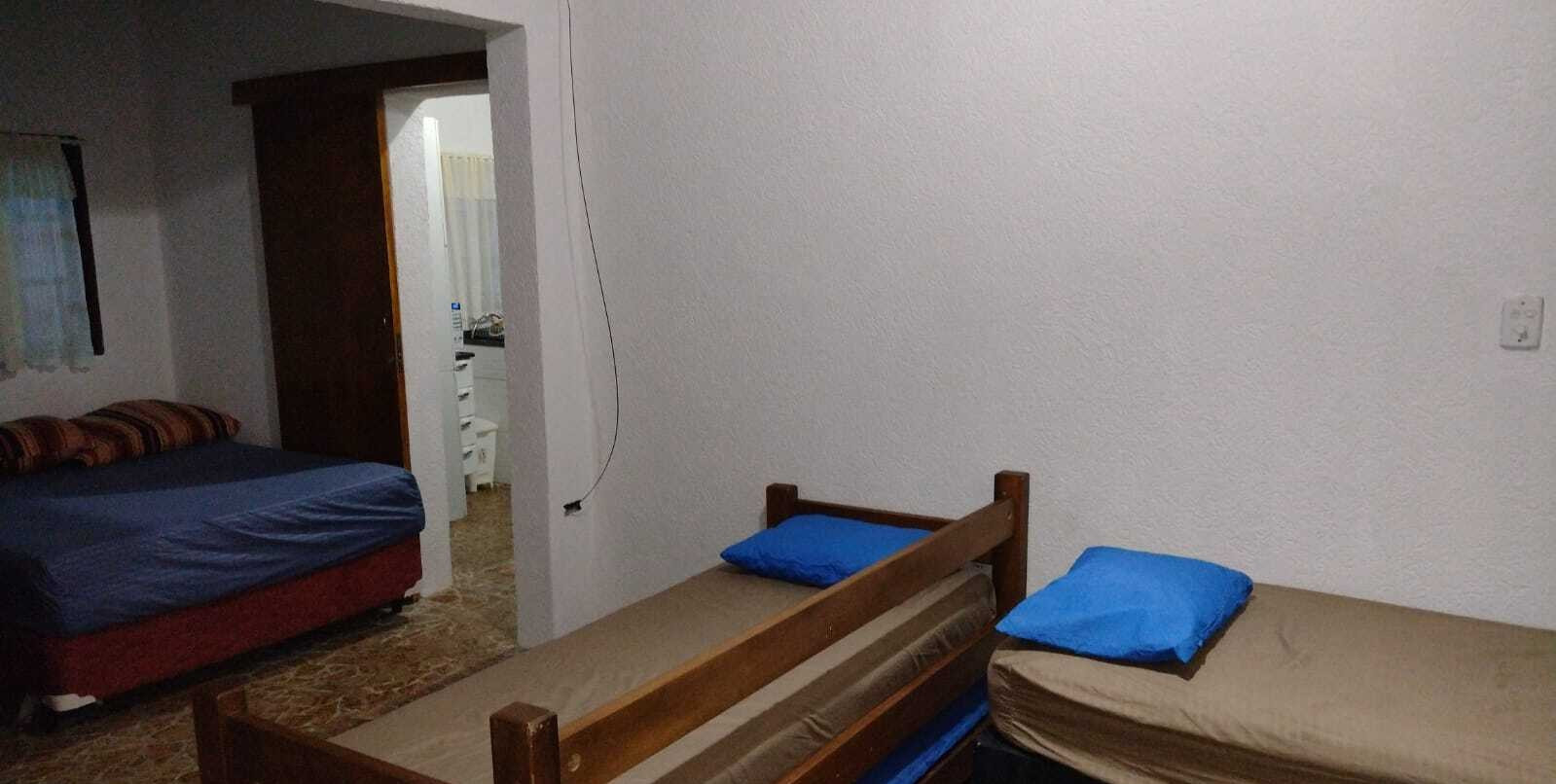- No quarto 1 há 3 camas de casal e 2 bicamas