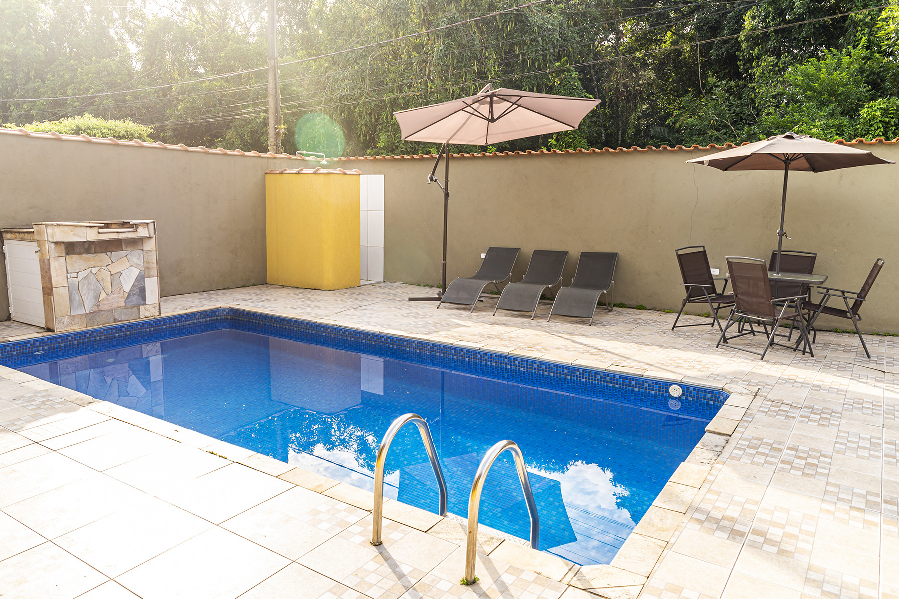 - A propriedade possui água de poço (sendo utilizada quando necessário, em chuveiros, lavar o quintal e completar a água da piscina)