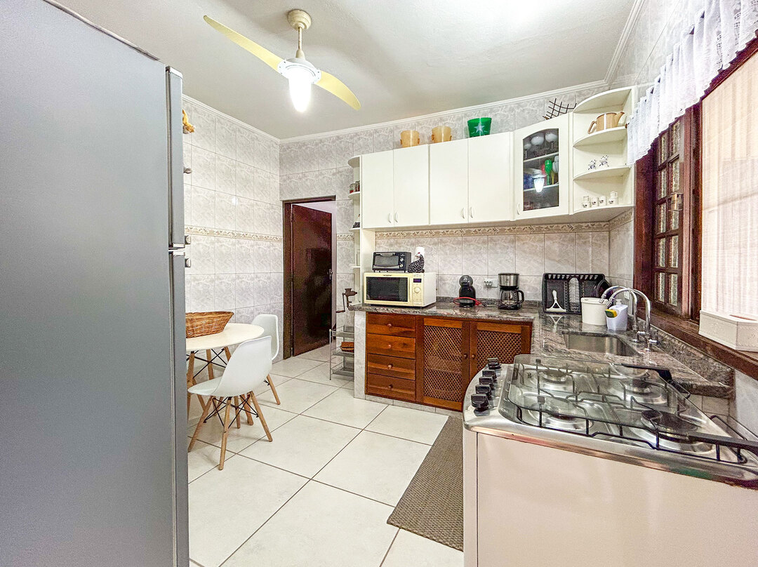 - A cozinha é equipada com todos os utensílios necessários para preparar suas refeições, incluindo fogão, forno, geladeira, liquidificador, micro-ondas, cafeteira dolce gusto e mesa