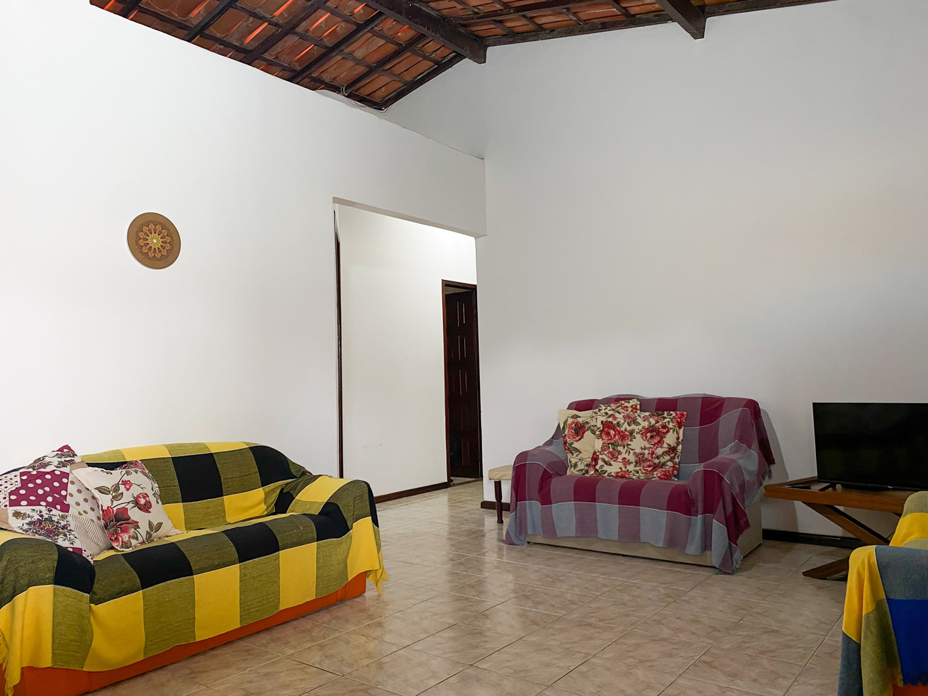 - Na sala você encontra cadeira, mesa de centro e sofá