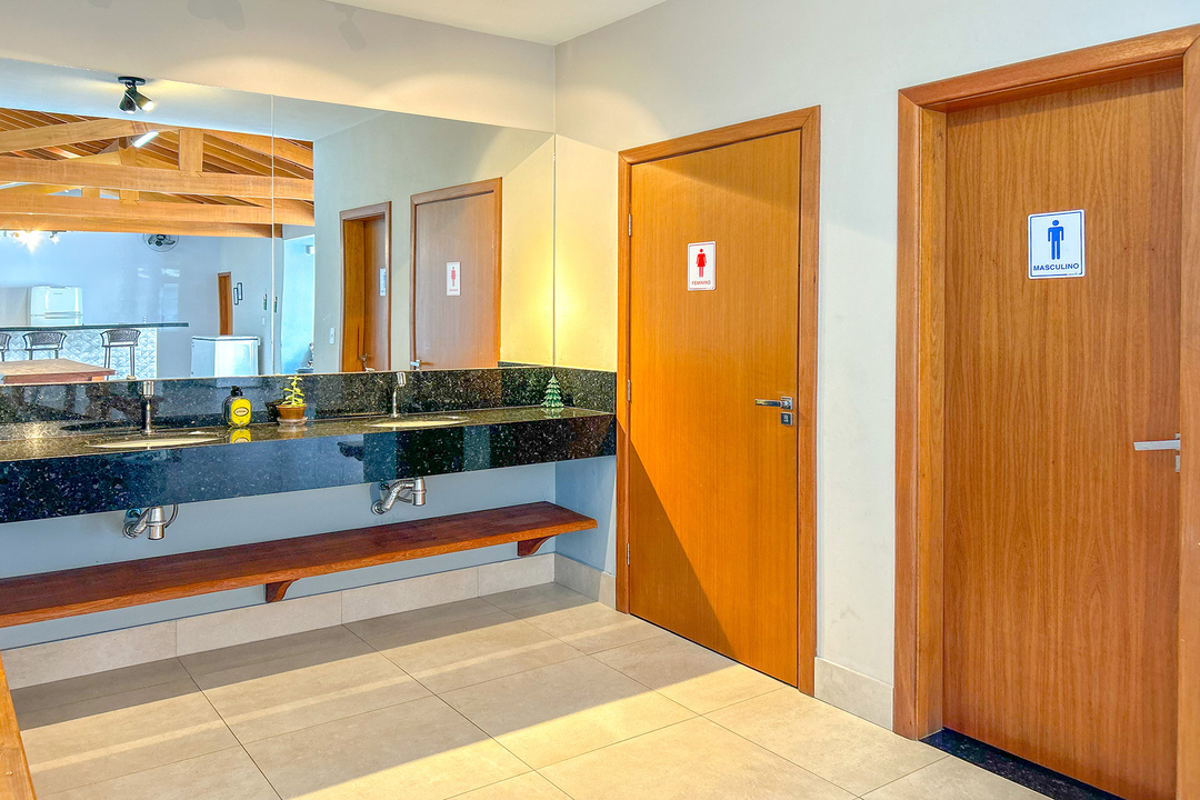 - Os banheiros possuem chuveiro elétrico, box de vidro/acrílico e secador de cabelo