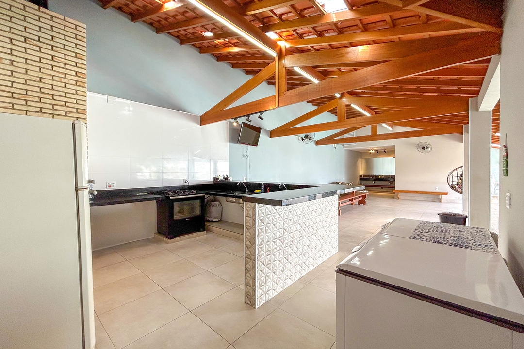 - A cozinha é equipada com todos os utensílios necessários para preparar suas refeições, incluindo freezer, fogão, micro-ondas, filtro de água e balcão
