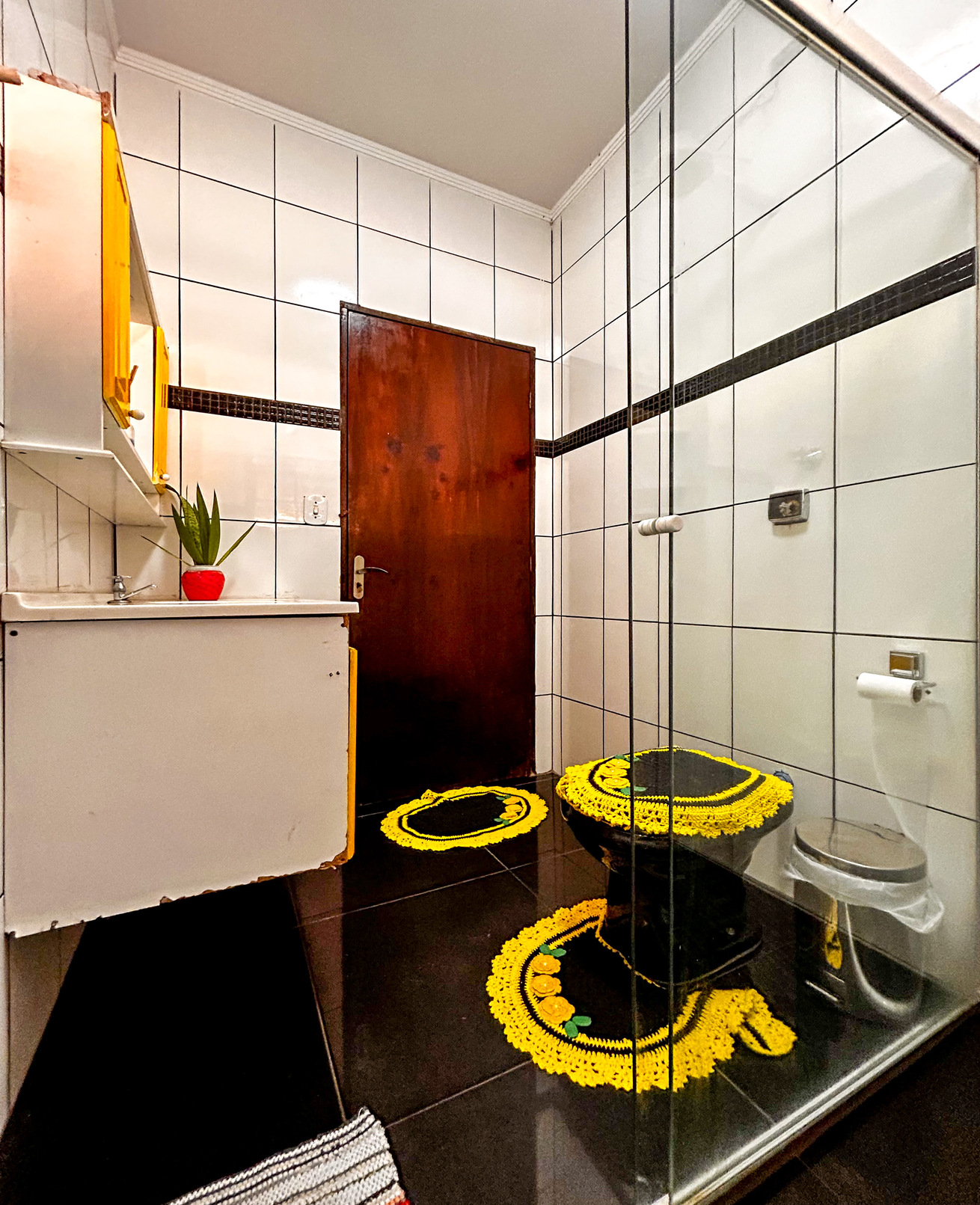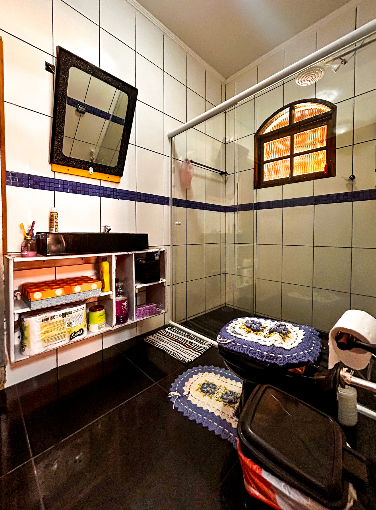 - Os banheiros possuem chuveiro elétrico e box de vidro/acrílico