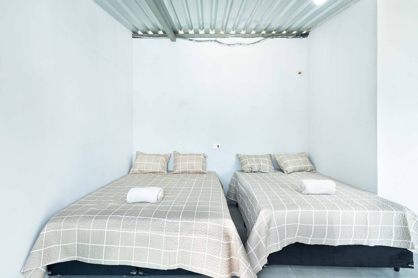 - Suíte 1: 2 camas queen size, armário e banheiro privativo.