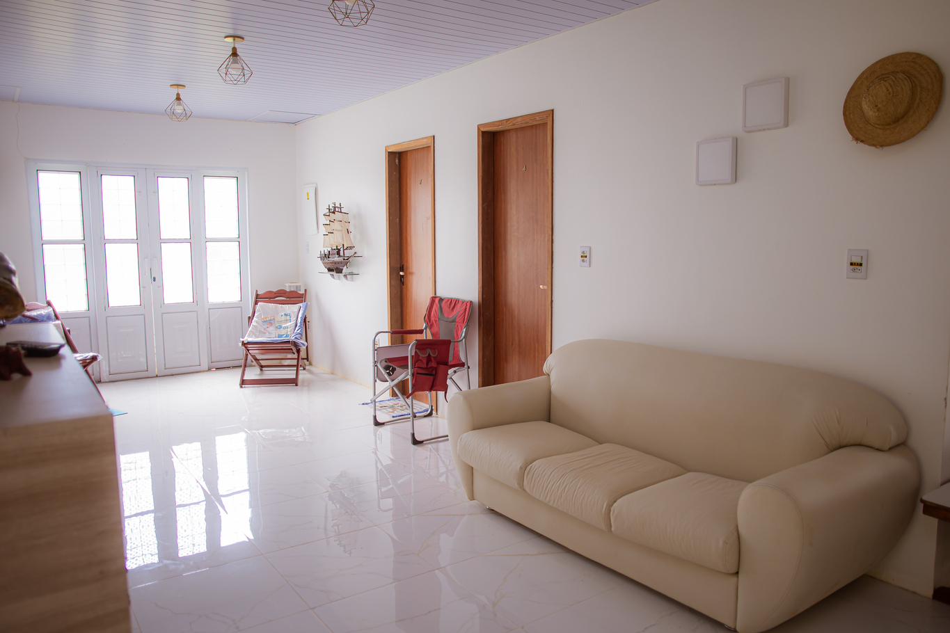 - A sala está equipada com cadeira, mesa de centro, poltrona e sofá