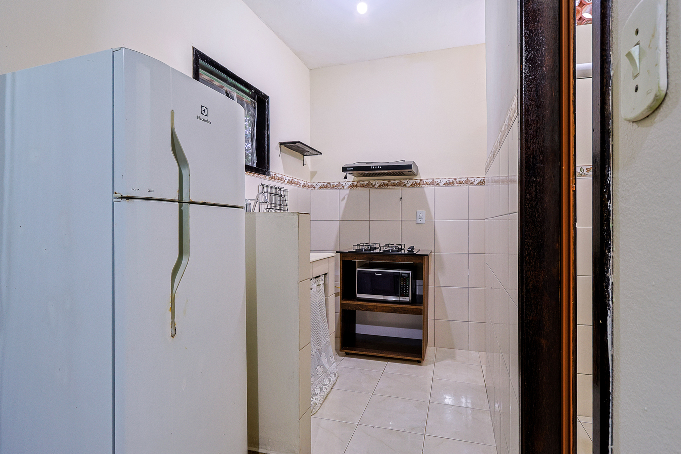 - Cozinha equipada com fogão, geladeira, micro-ondas, exaustor embutido e utensílios diversos (exceto óleo e sal)