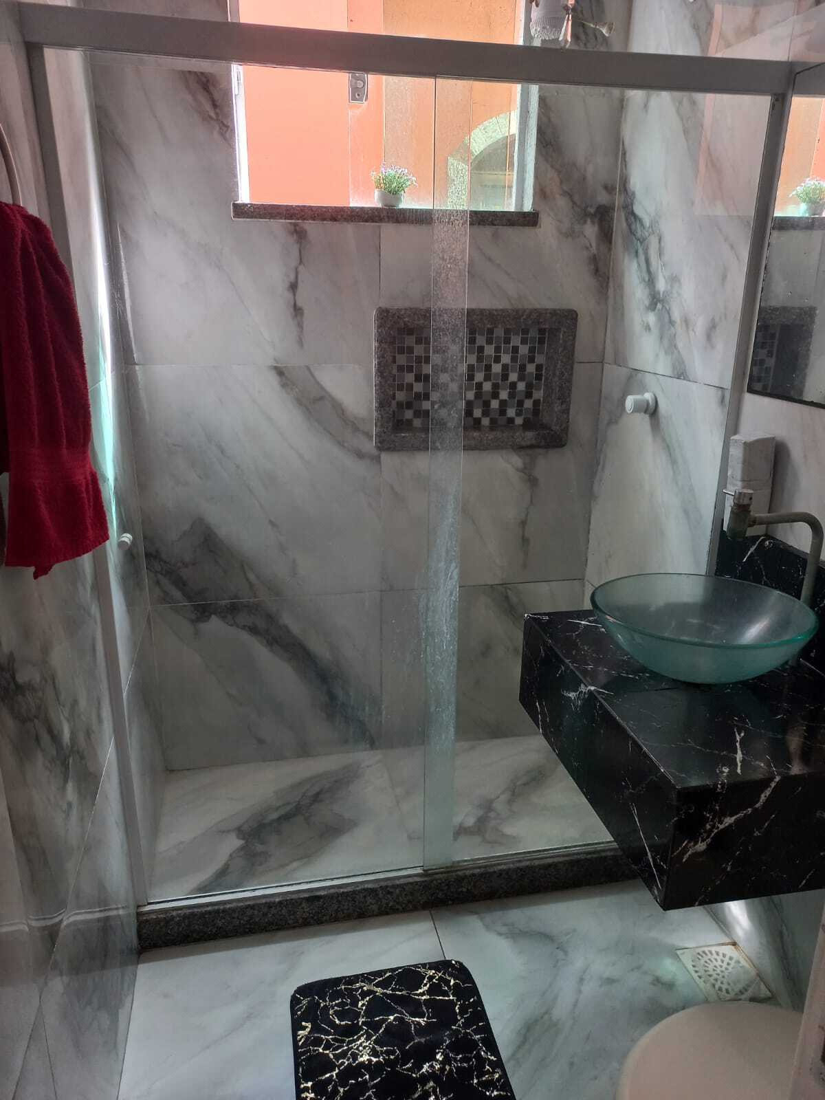 - Os banheiros possuem chuveiro elétrico, box de vidro e espelho