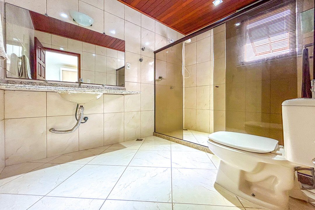 - Banheiro equipado com chuveiro elétrico e box de vidro/acrílico