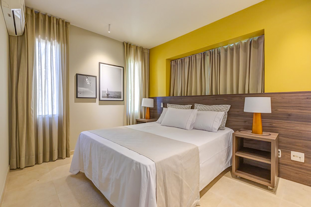 - Nas suítes você encontra armário, edredom / cobertor, protetor de colchão, cortinas blackout, chuveiro elétrico e box de vidro/acrílico