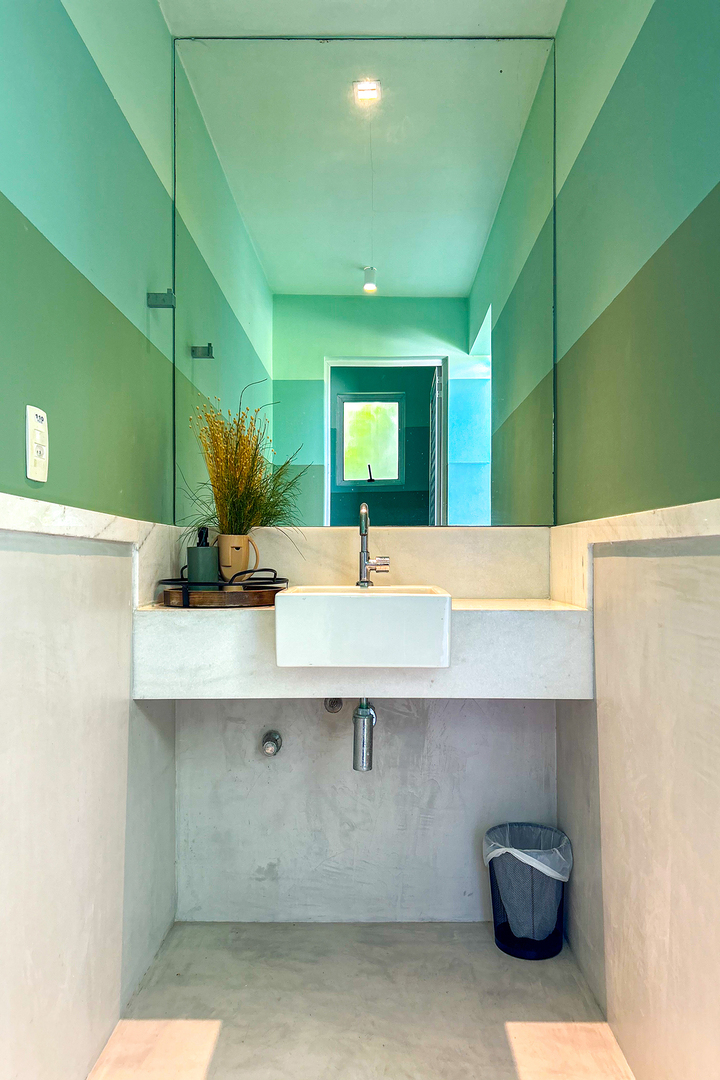 - O banheiro possui chuveiro elétrico e box de vidro/acrílico