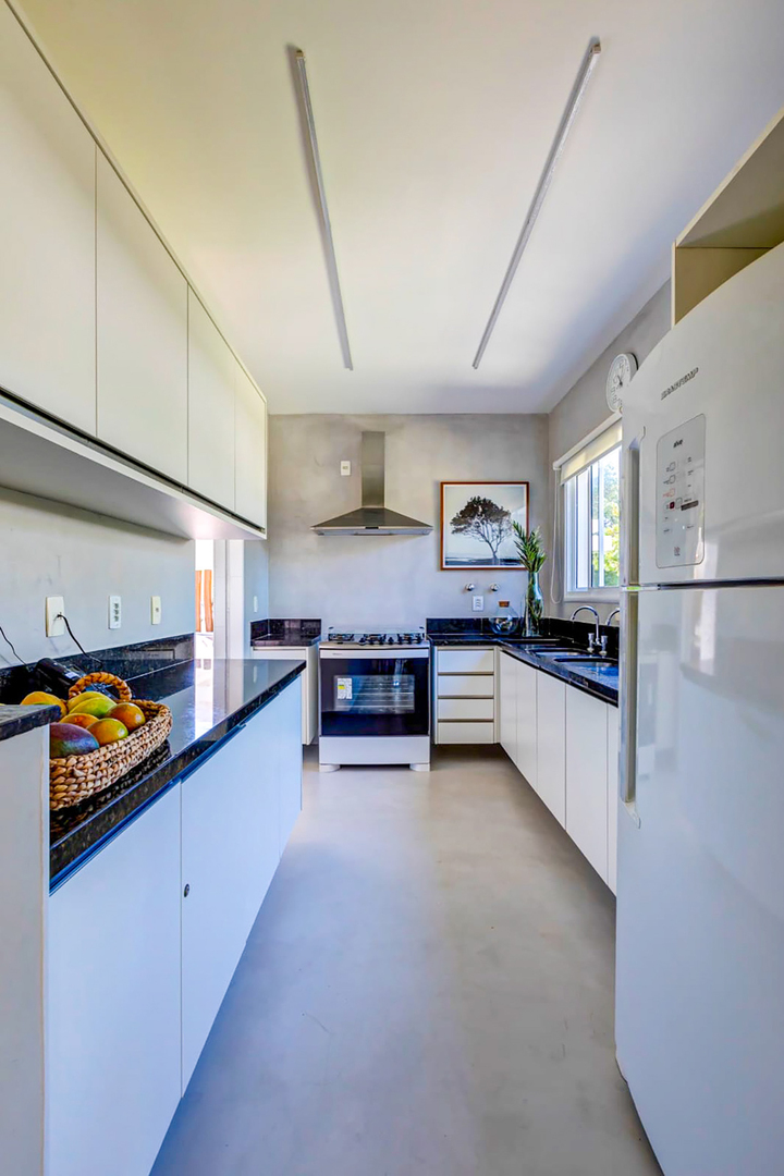 - A cozinha possui diversos utensílios necessários para preparar ótimos pratos, incluindo cafeteira, freezer, fritadeira, fogão, forno, geladeira, liquidificador, micro-ondas, balcão