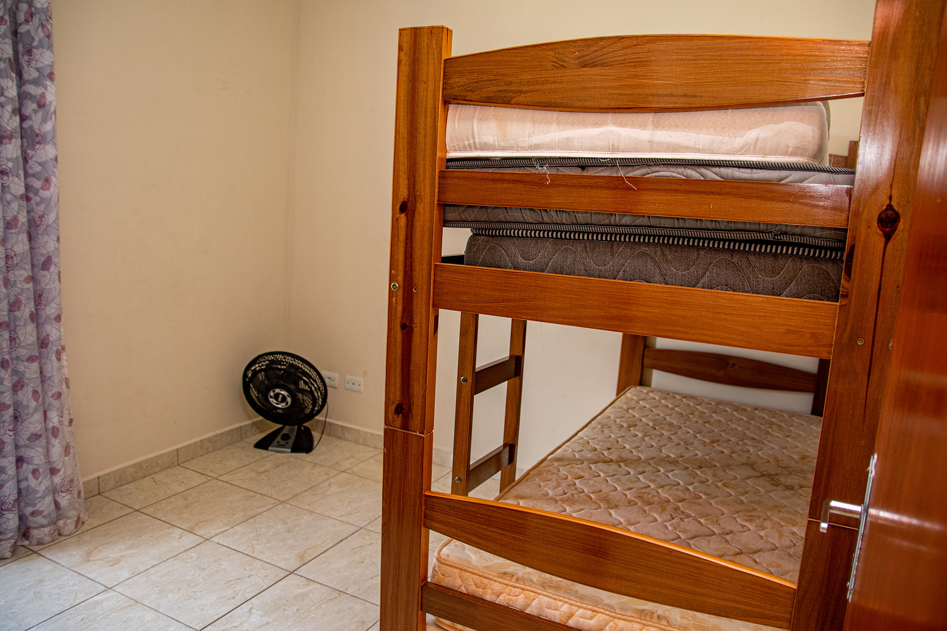 - No quarto 2 há 1 beliche e 1 colchão extra de casal