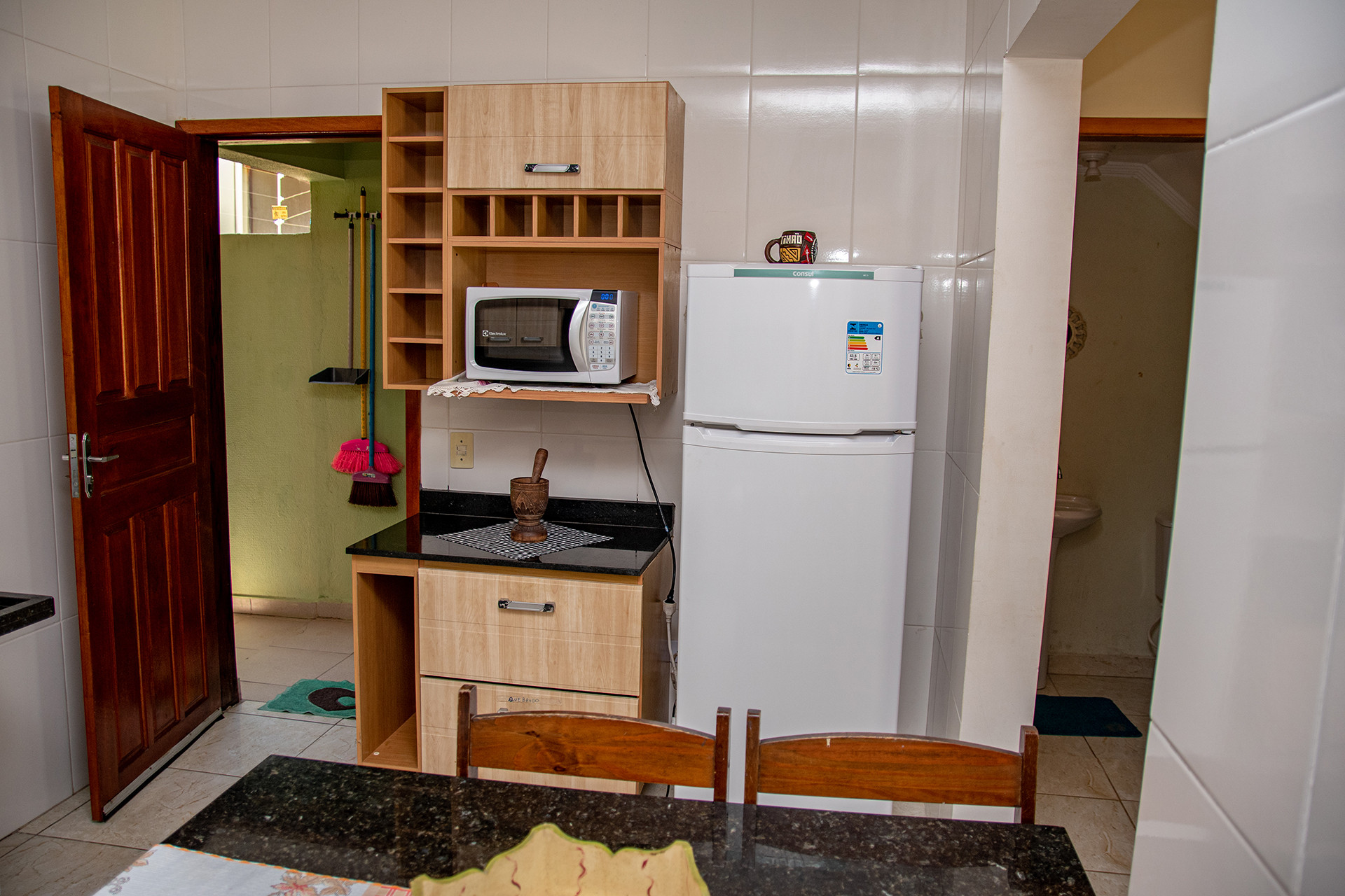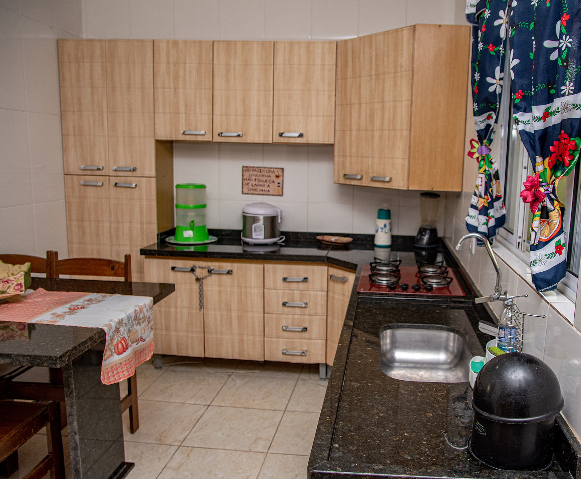 - A cozinha é equipada com todos os utensílios necessários para preparar ótimas refeições, incluindo cooktop, liquidificador, micro-ondas, panela elétrica e grill