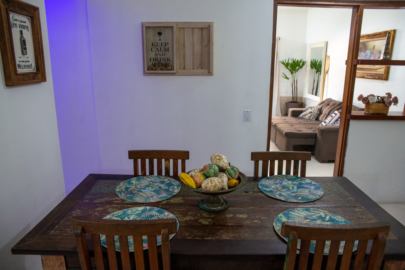 - Cozinha equipada com fogão, forno, geladeira, freezer, microondas, liquidificador, cafeteira, torradeira, chaleira, mesa e utensílios diversos (exceto óleo e sal)