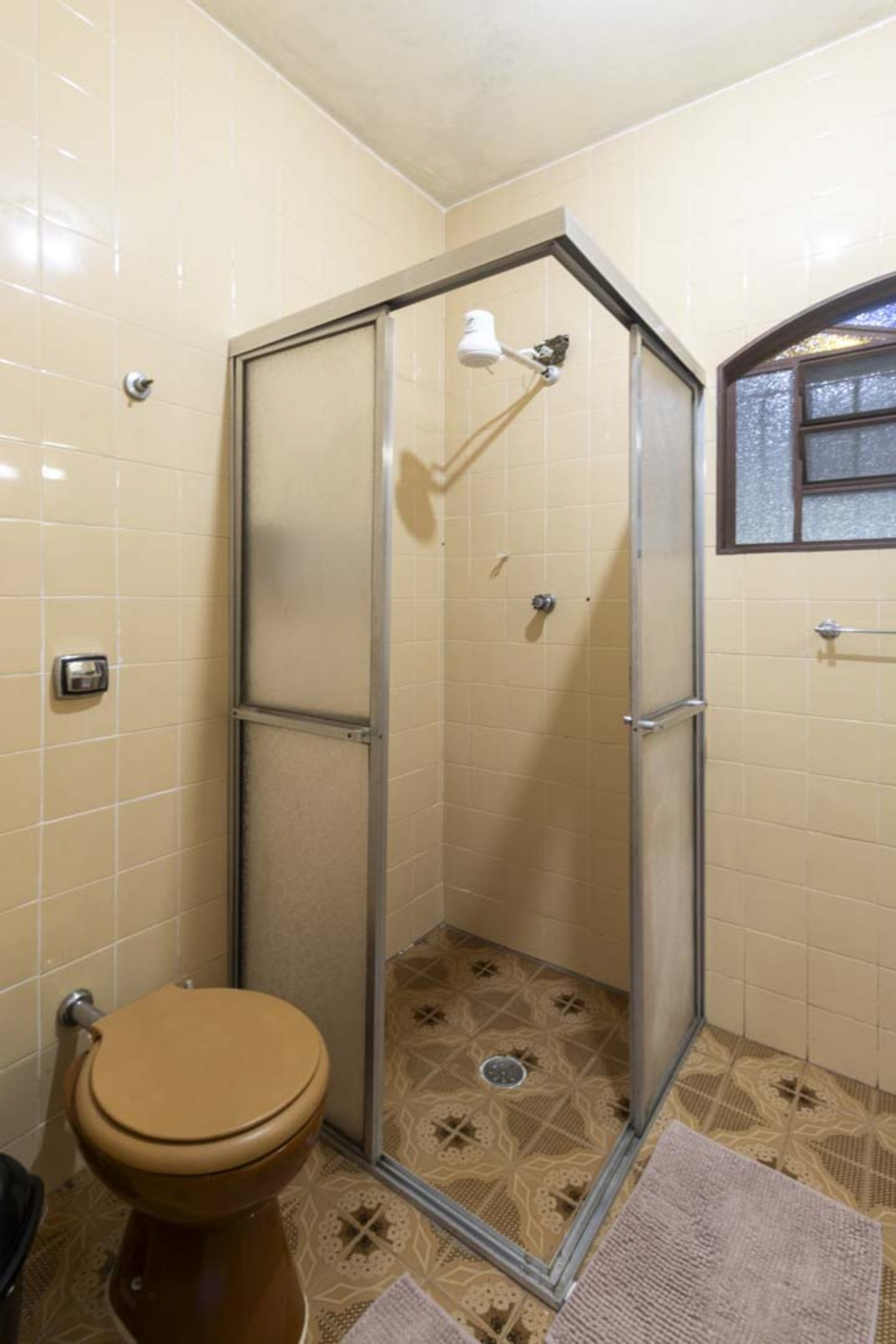 - Já os banheiros possuem chuveiro elétrico e box de vidro/acrílico