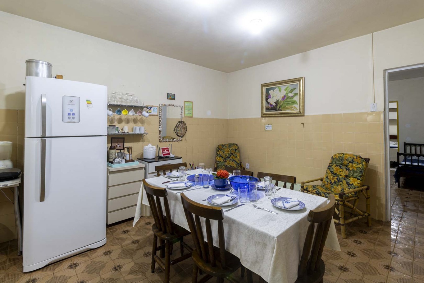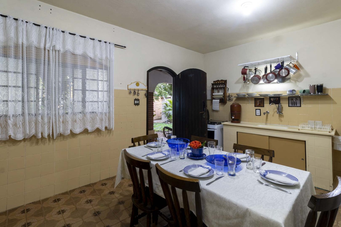 - A cozinha oferece diversos utensílios, incluindo fritadeira, fogão, geladeira, liquidificador, micro-ondas. Forneceremos sal, café, óleo e pimenta