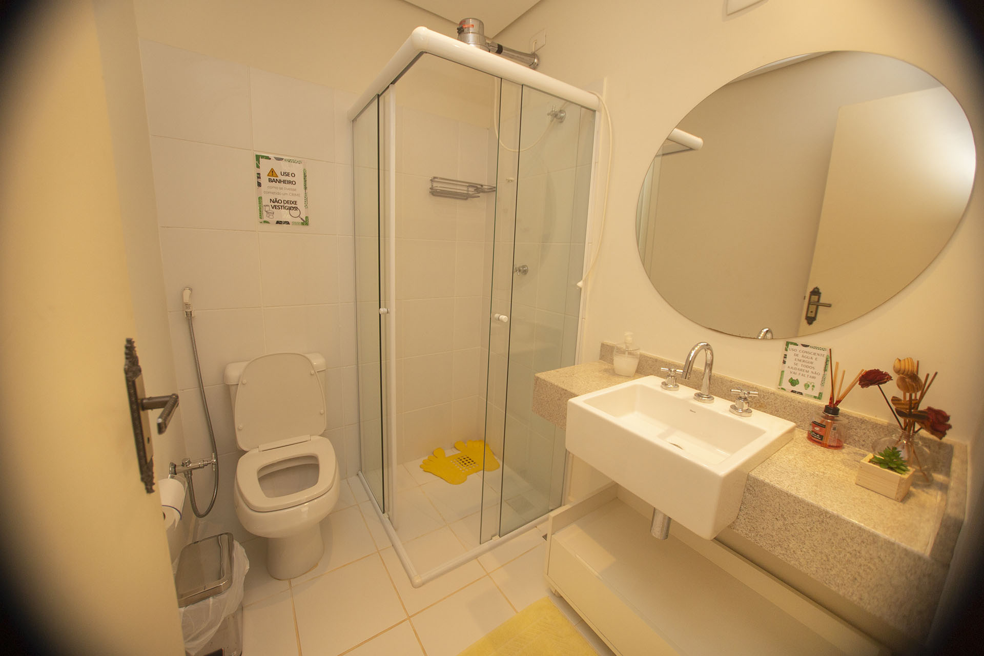 - Na suíte 5 há 2 camas de solteiro, chuveiro elétrico e box de vidro