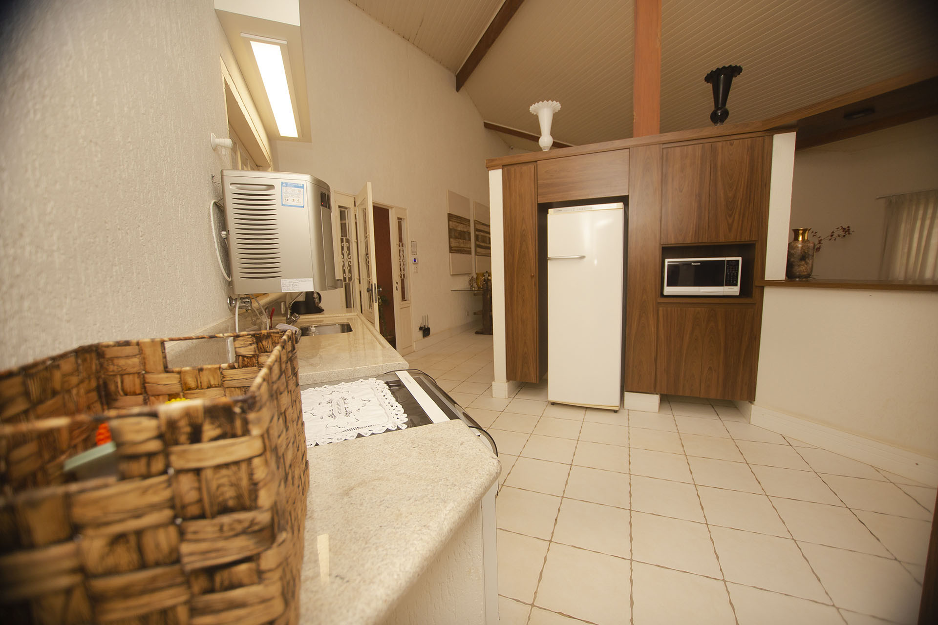 - A cozinha é equipada com todos os utensílios necessários para preparar suas refeições, incluindo geladeira, fogão, freezer, cafeteira, sanduicheira, liquidificador micro-ondas e purificador/filtro