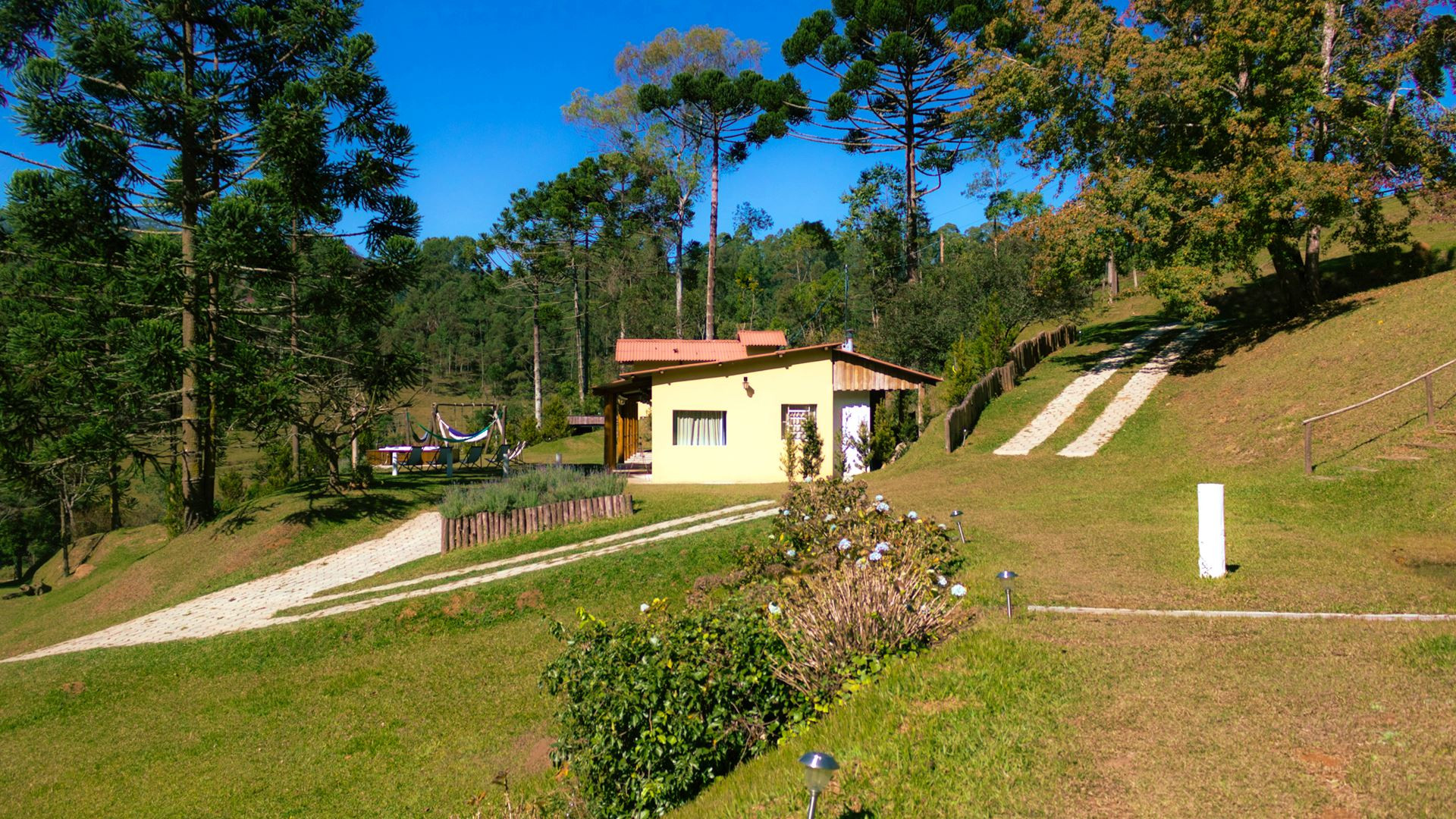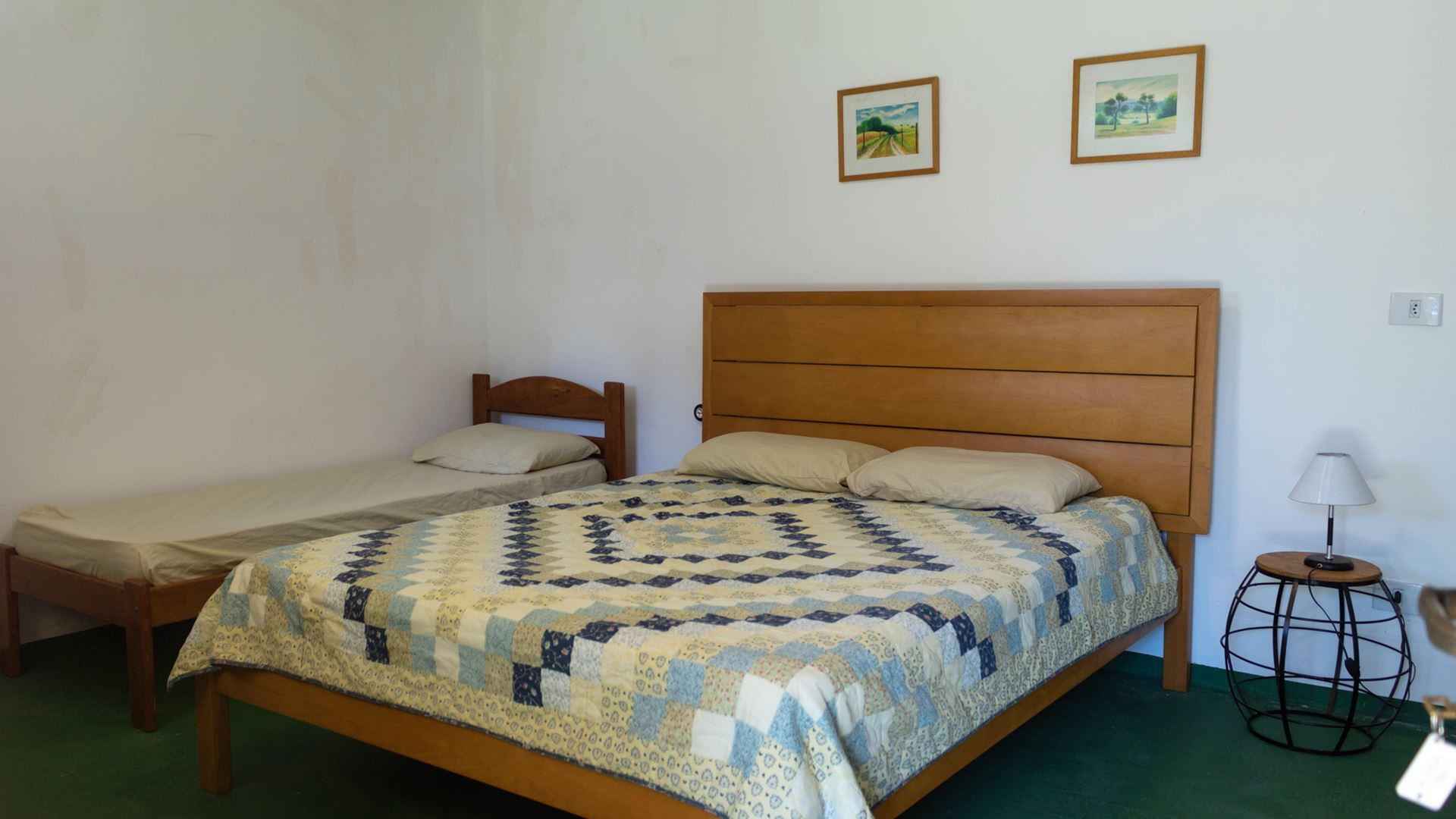 - Na suíte 1 há 1 cama de solteiro e 1 cama king size (chalé 1)