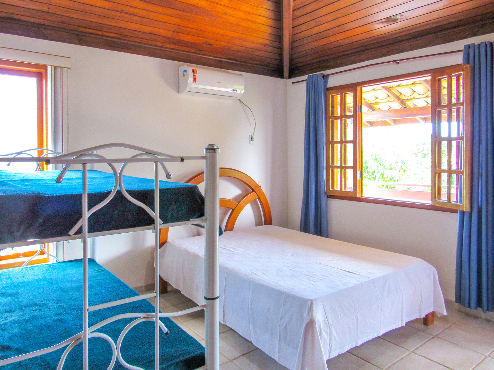 - Os quartos possuem 5 camas de casal, 2 beliches, 5 colchões extras, ar-condicionado e armários (cada)